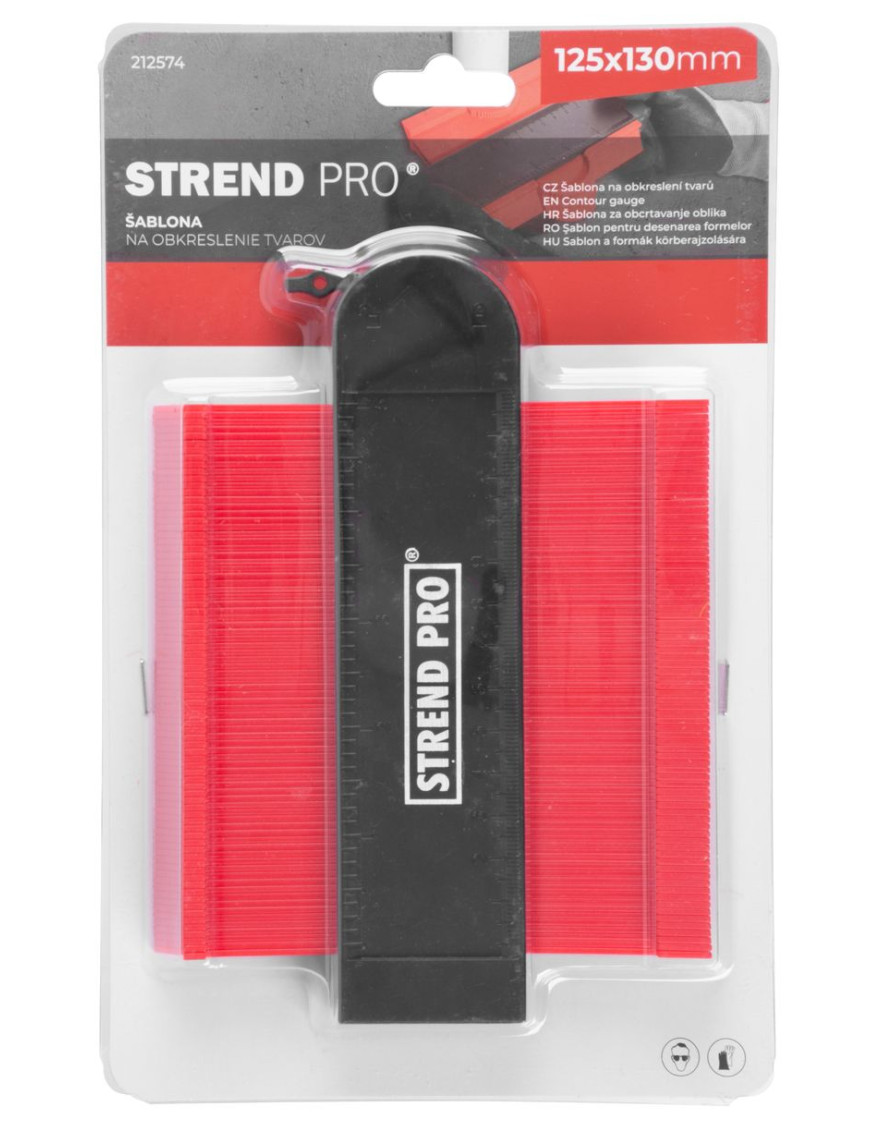 Šablóna na obkreslenie tvarov Strend Pro sa používa na presné označenie tvarov pre rezanie a montáž dlaždíc, podláh, kobercov, vodovodných potrubí. Jej súčasťou je i magnet pre lepšie prichytenie. Rozmery: 125x130 mm.
