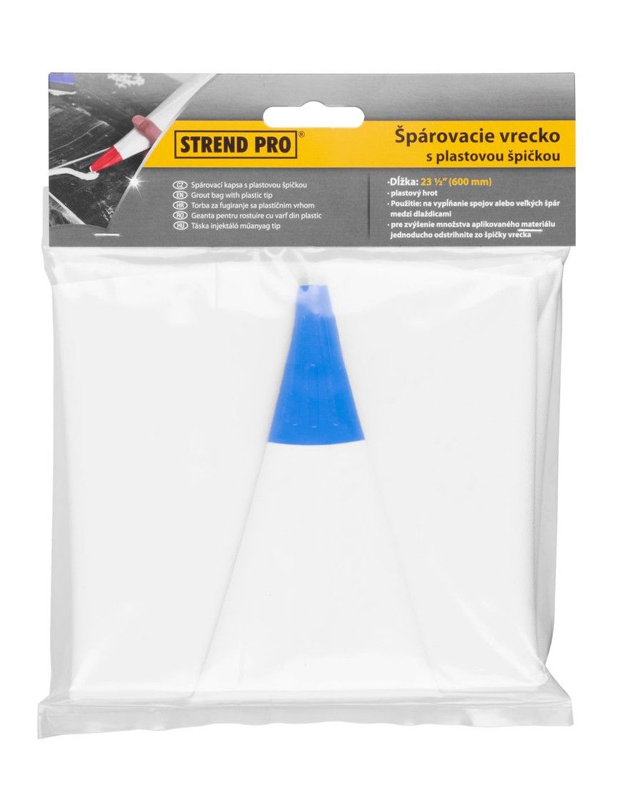 Škárovacie vrecko Strend Pro nesmie chýbať v žiadnej dielni a výbave murárov a remeselníkov. Slúži ako pomôcka pri špárovaní obkladov, dlažieb a tehál. Vrecko je vyrobené z materiálu, ktorý zabezpečí, že sa počas aplikácie neroztrhne a je ľahko umývateľné. Odstrihnutím plastovej špičky zabezpečíte požadovanú hrúbku špáry.