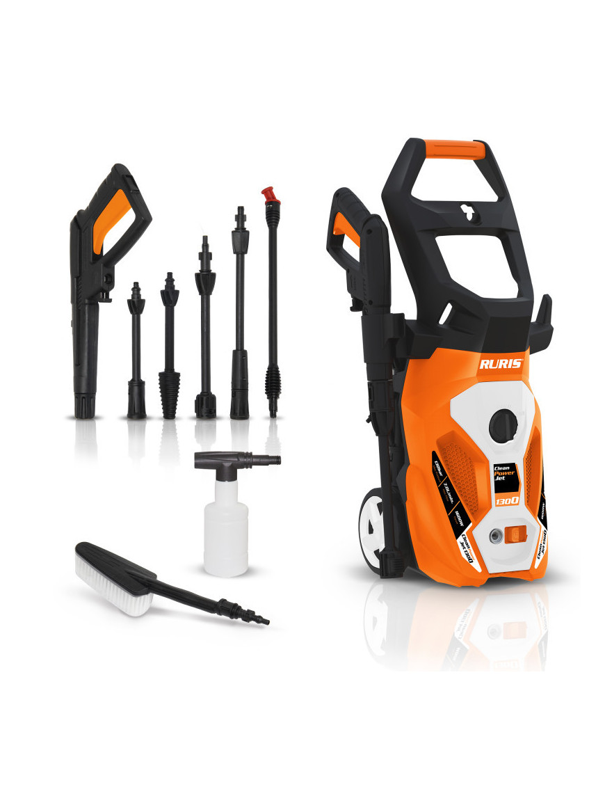 RURIS Clean Power Jet 1300 je ideálnou voľbou pre údržbu chodníkov, dvorov a áut. Umývačka zvolená pre tento typ prevádzky umožňuje používateľom zvoliť si režim umývania alebo typ vodného prúdu.Zariadenie má zároveň sadu trysiek pre väčší výber typu vodného prúdu pre jednotlivé aplikácie. Súčasťou výbavy je aj funkcia napenenia rôznych predmetov, ktoré je potrebné vyčistiť penou.Pohyb sa vykonáva pomocou koliesok, bez nutnosti zdvíhania zo zeme pri presune do pracovného bodu.Pripojenie zariadenia RURIS k vodovodnej sieti je realizované pomocou rýchlospojky. Umývačka má aj funkciu filtrácie vody.Všetky umývačky RURIS majú funkciu otáčania hadice o 360 stupňov v tele vodnej pištole, čo umožňuje dlhodobé používanie vysokotlakových hadíc RURIS bez poškodenia hadicovej vložky a tým aj hadice.