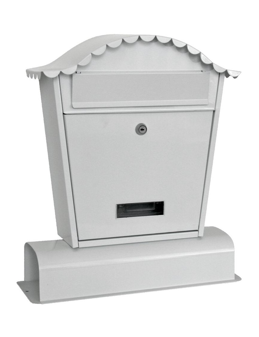 Elegantná poštová schránka v bielej farbe. Obsahuje časť na letáky. Rozmery: 40x14x49 cm. Materiál: kov.