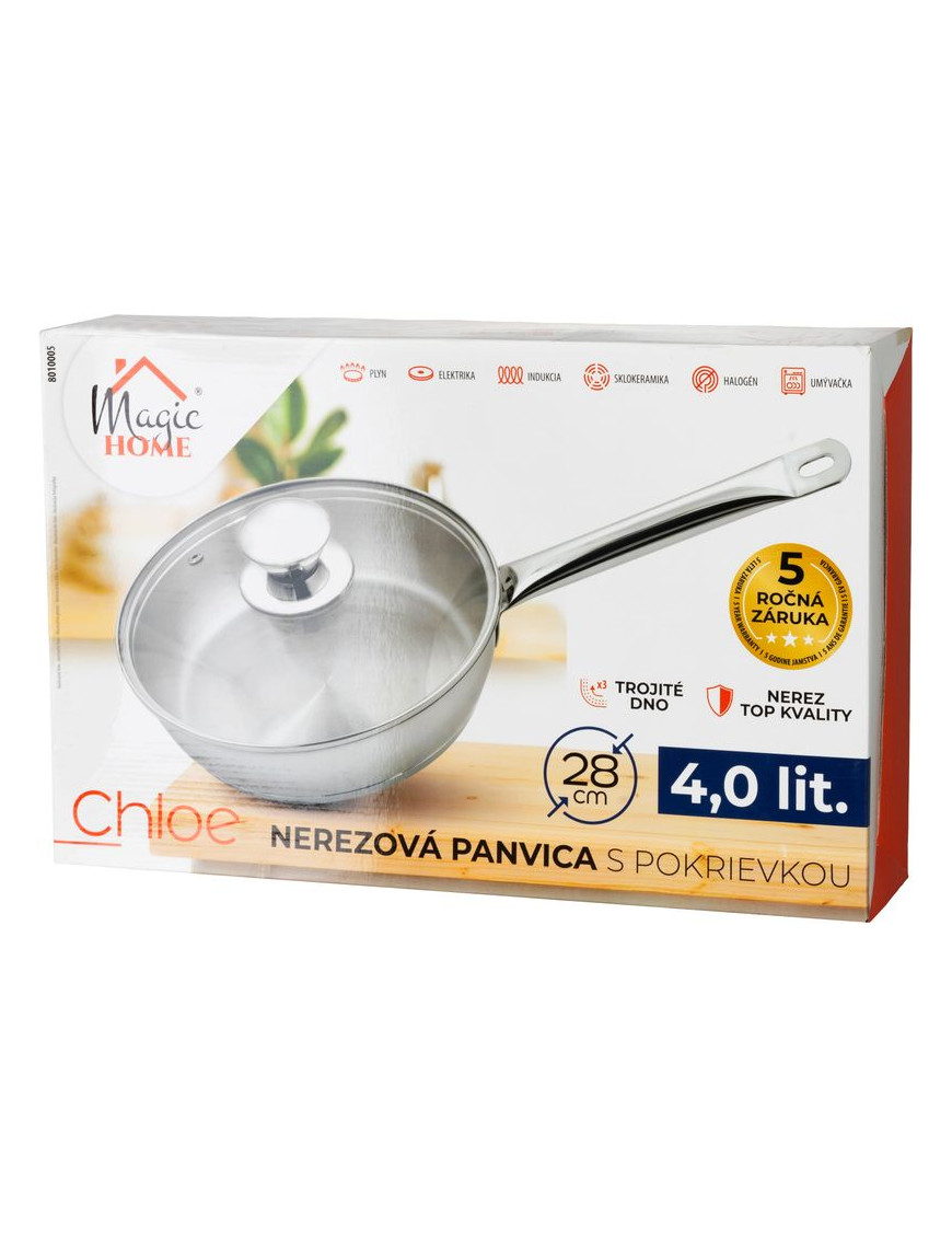 Panvica MagicHome Chloe, 28 cm, 4 lit.,so sklenenou pokrievkou, nerez