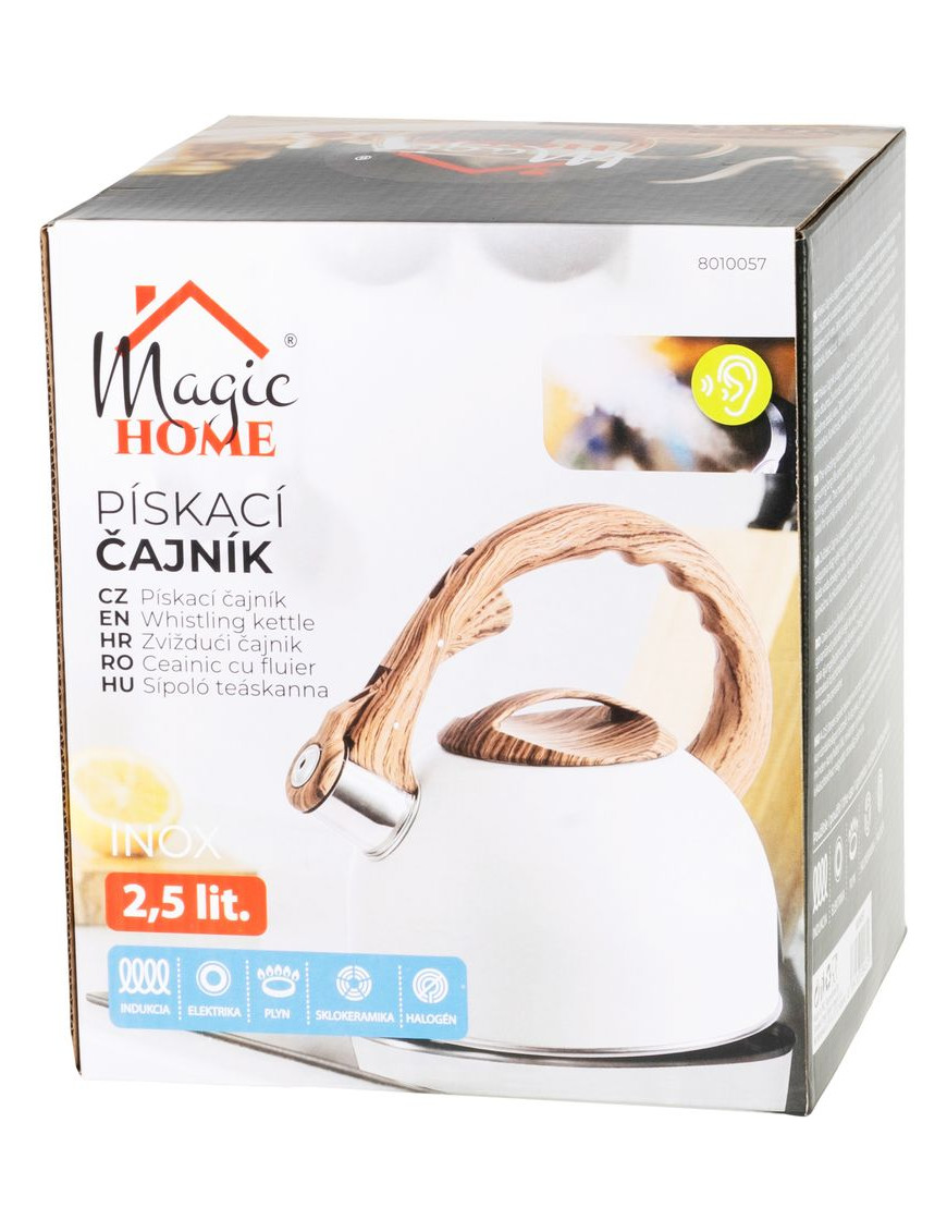 Čajník MagicHome pískací biely 2500 ml – Elegancia a funkčnosť vo vašej kuchyni