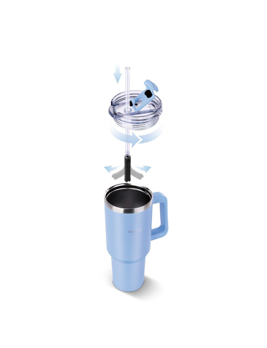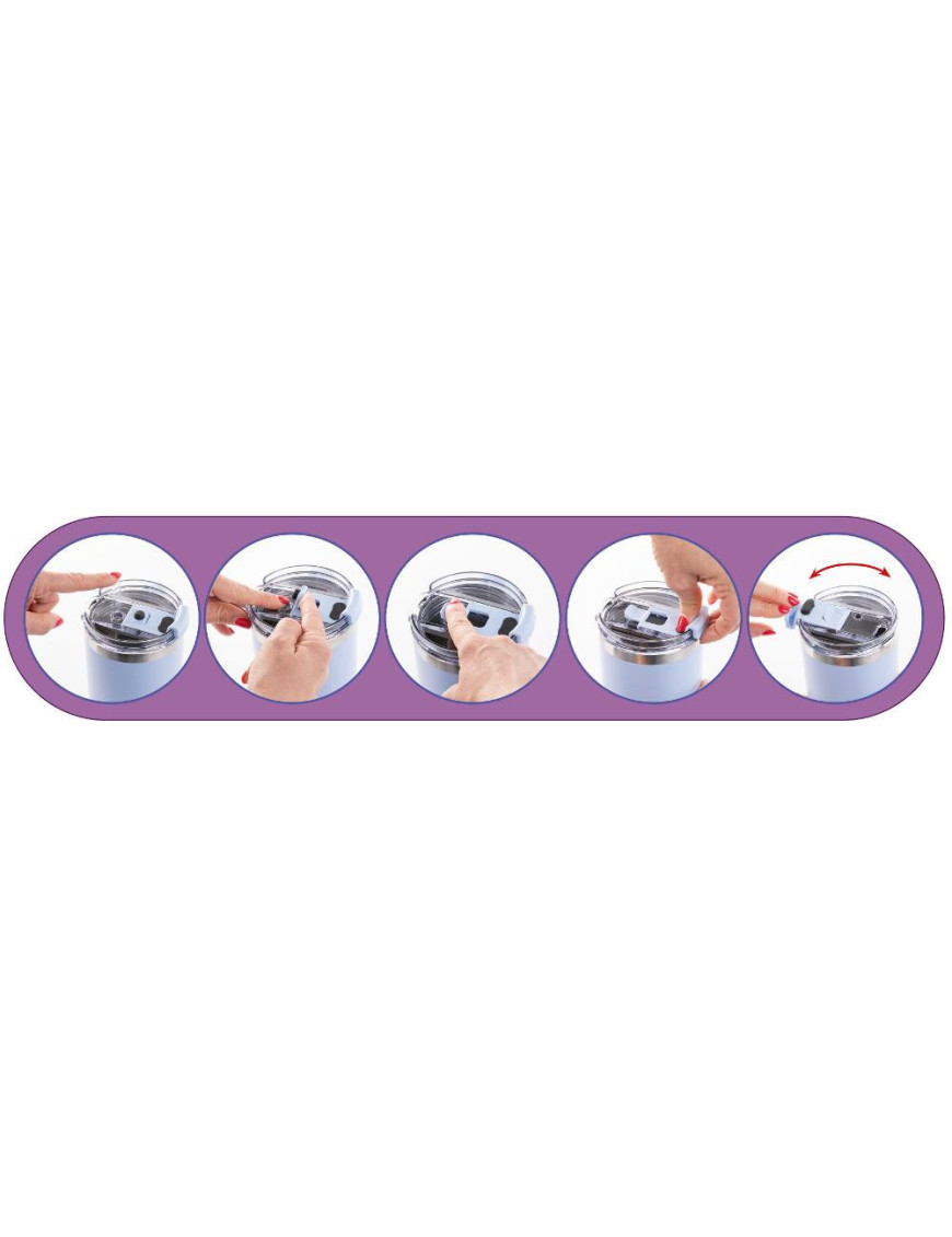 Jeho výhodou je ergonomická rukoväť a praktické slamka vo vnútri hrnčeka, ktoré možno ľahko zasunúť, keď sa nepoužíva. Nápoje je možné z hrnčeka konzumovať nielen cez slamku, ale aj zatvárací otvor vo v...