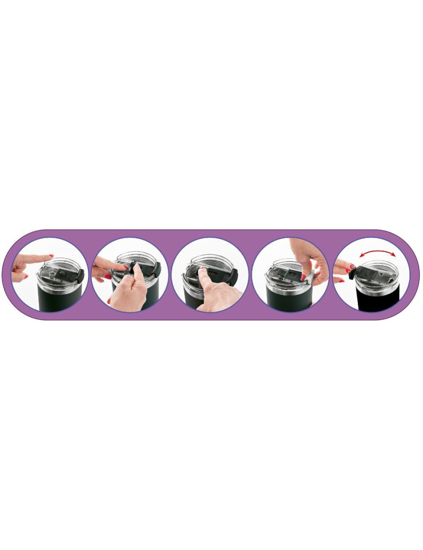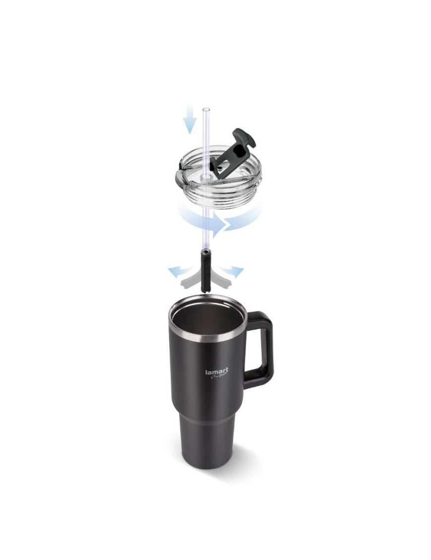 Jeho výhodou je ergonomická rukoväť a praktické slamka vo vnútri hrnčeka, ktoré možno ľahko zasunúť, keď sa nepoužíva. Nápoje je možné z hrnčeka konzumovať nielen cez slamku, ale aj zatvárací otvor vo v...