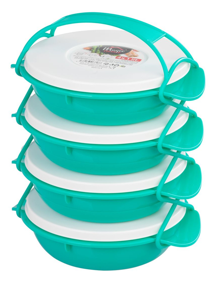 Plastový obedár MagicHome je určený na prenášanie potravín a jedál. Skladá sa zo 4 misiek, ktoré majú litrový objem. Plastový obedár môžete umývať v umývačke riadu, odkladať v chladničke i mrazničke. Misky sa jednoducho zopínajú plastovou sponou. Rozmer obedáru : 22,4x20,5x29,5 cm.
