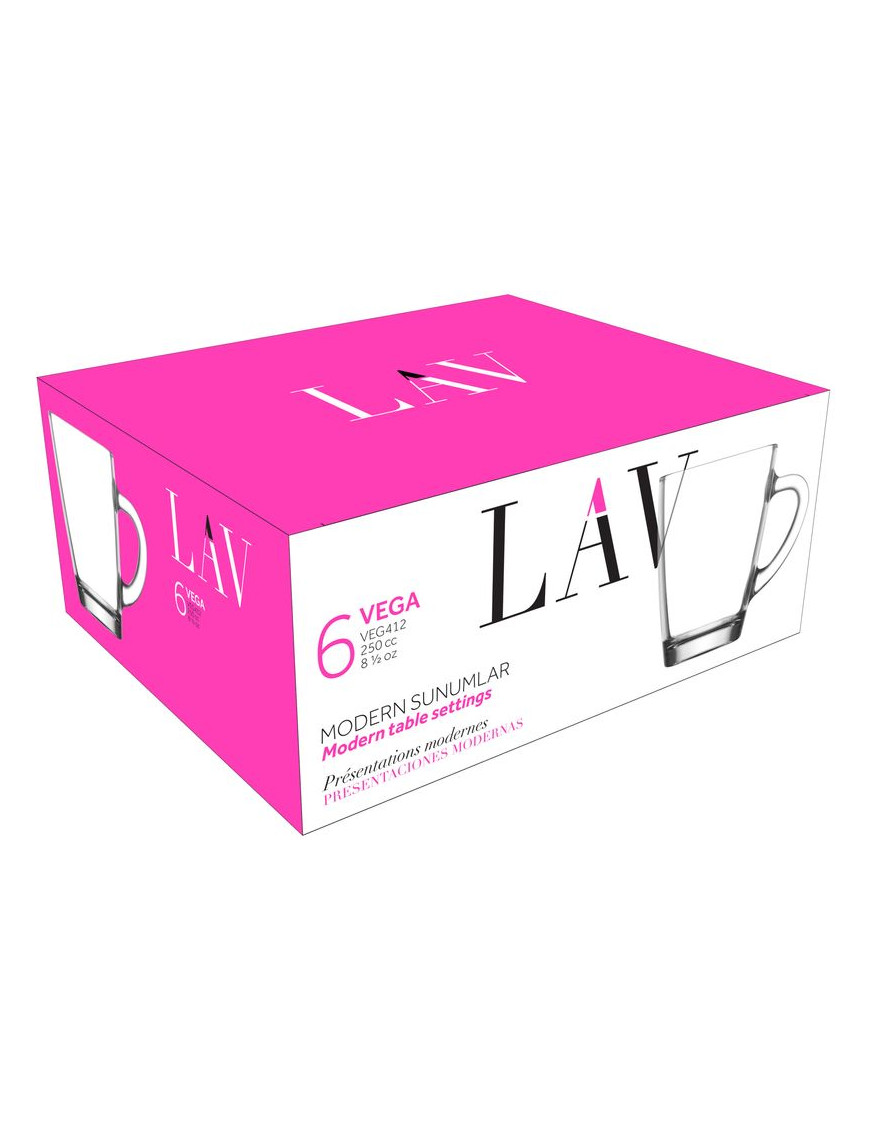 Hrnček Vega, LAV, sklenený, na kávu/čaj, 250 ml, 76x100 mm, sada 6 ks