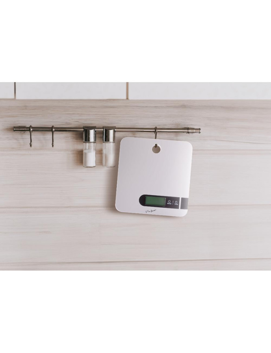 Váha je navrhnutá bez misky, čo umožňuje jej jednoduché zavesenie a skladovanie.