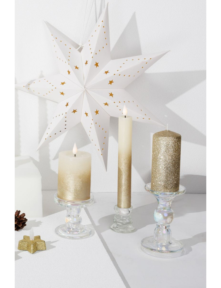 Oživte svoju vianočnú výzdobu s minimalistickým stojanom na sviečku MagicHome. Tento elegantný svietnik má rozmery 5,5x5,5 cm a je vyrobený z kvalitného skla, ktoré je potiahnuté jemnou perleťovou farbou. Jeho jednoduchý a čistý dizajn prináša do vášho interiéru sofistikovaný a moderný nádych. Sklenená konštrukcia s perleťovým náterom vytvára nádherné odrazy svetla a dodáva vašim sviečkam elegantný vzhľad. Tento minimalistický svietnik je ideálny na vytvorenie jemnej a štýlovej atmosféry vo vašej domácnosti počas sviatkov.