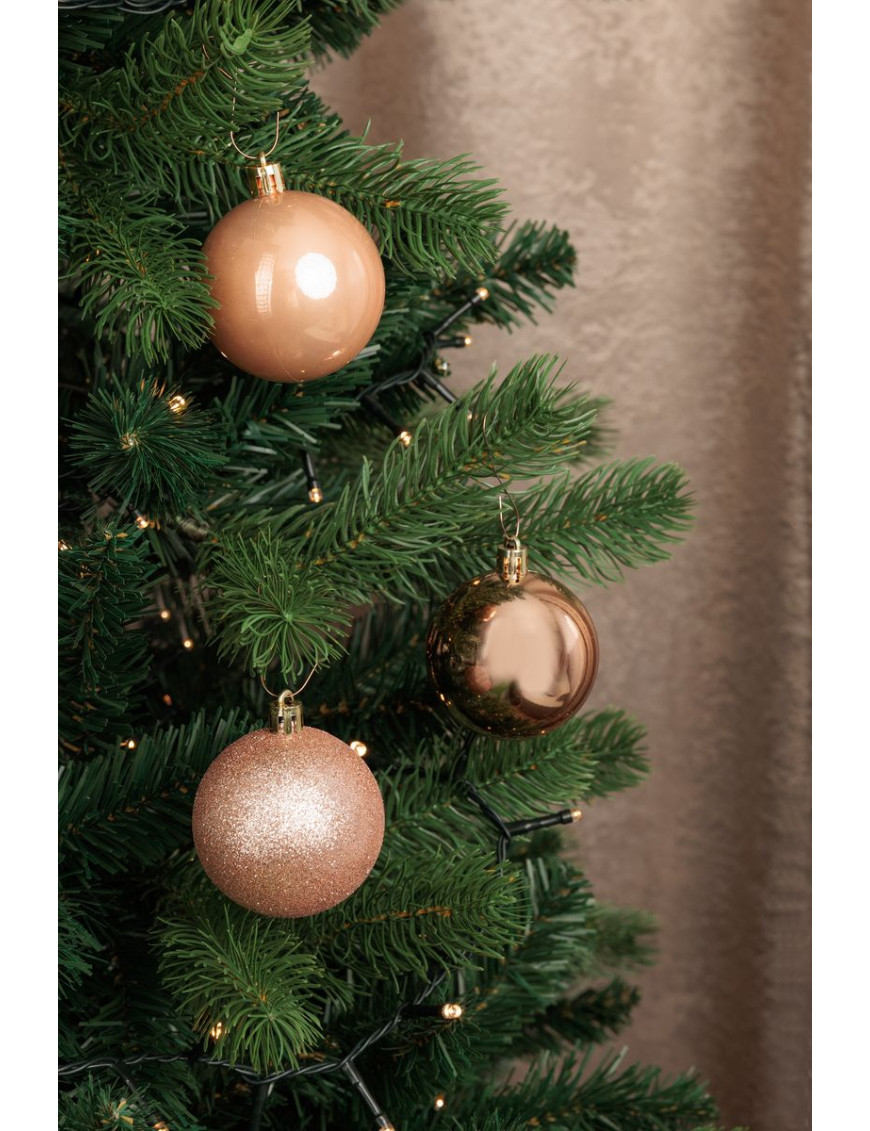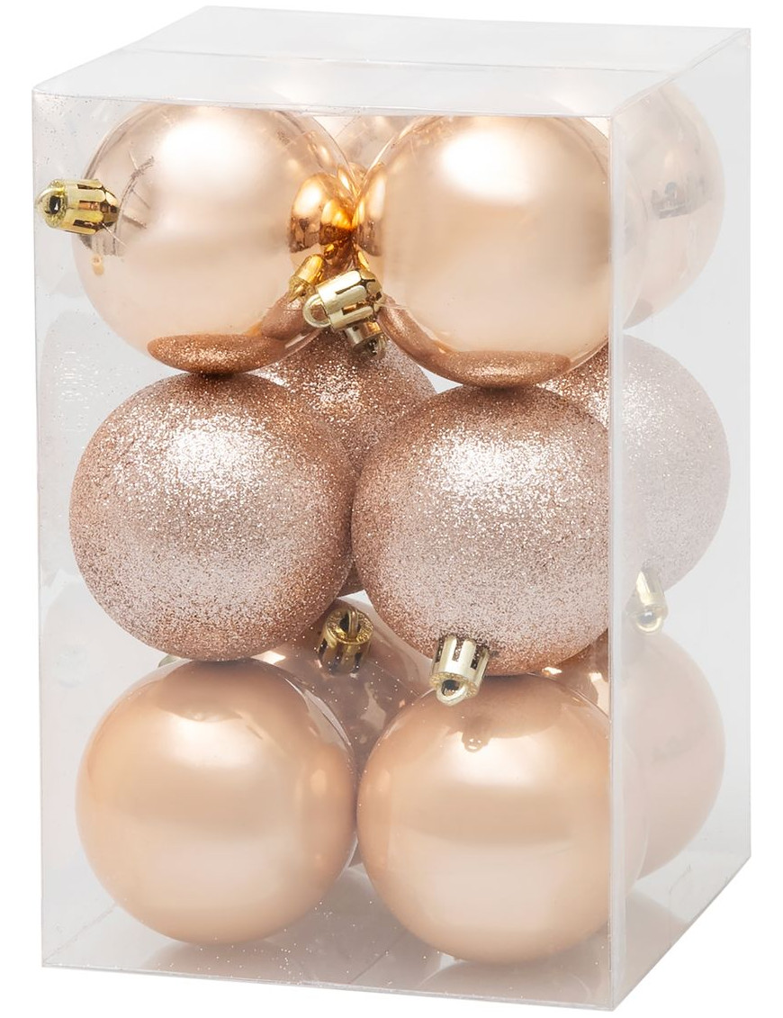 Súprava ozdôb na stromček slúži na slávnostné ozdobenie vianočného stromčeka. Pozostáva z 12 ks guľatých vianočných ozdôb s priemerom 6 cm. Odobý sú ružovej a zlatej farbý a sú vyrobené z plastu.