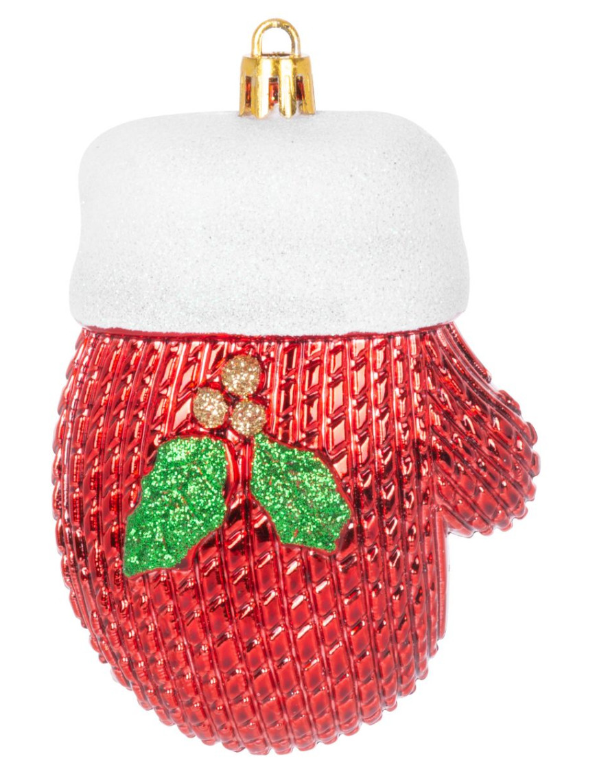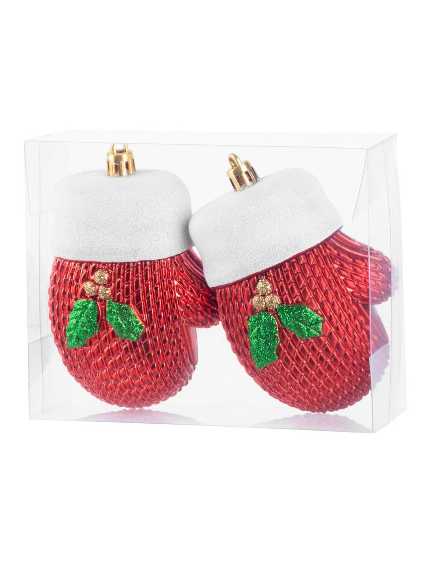 Súprava ozdôb na stromček slúži na slávnostné ozdobenie vianočného stromčeka. Pozostáva z 2 ks rukavíc s rozmerom 10 cm. Farba ozdôb je červená. Sú vyrobené z plastu.