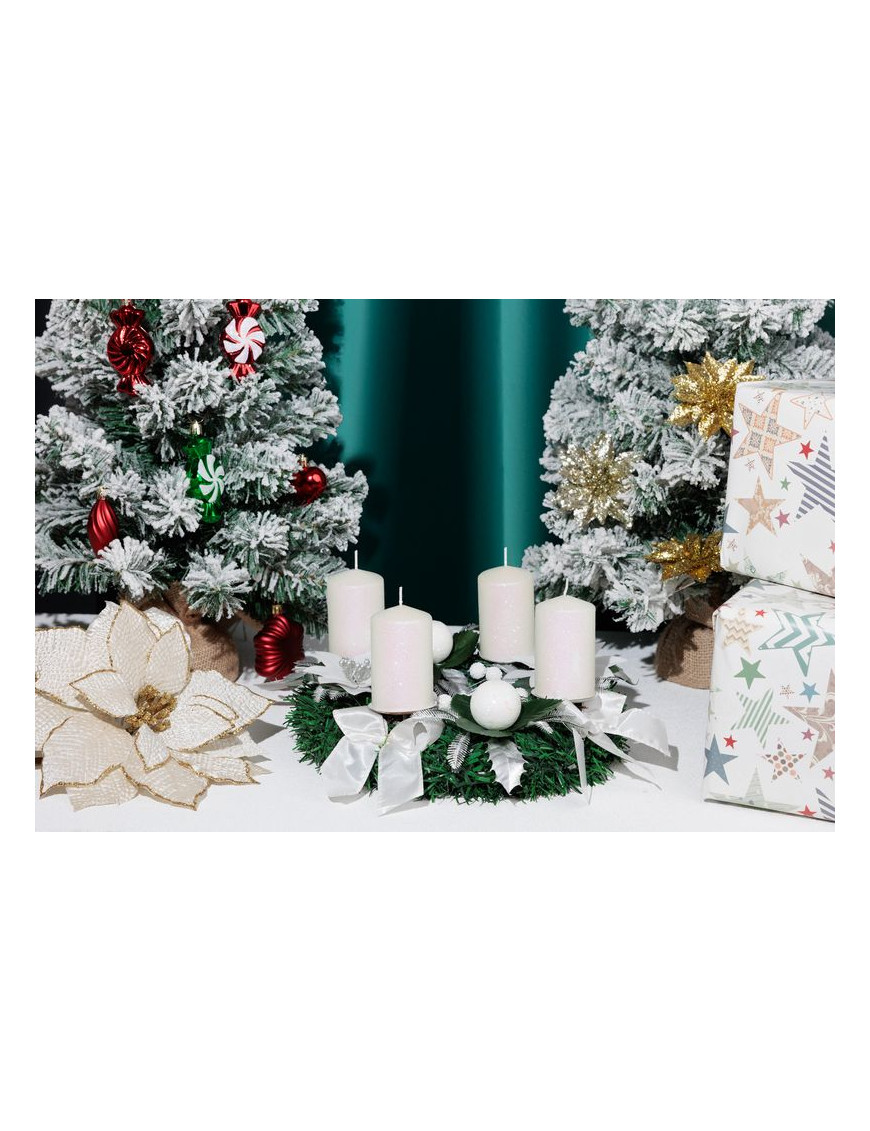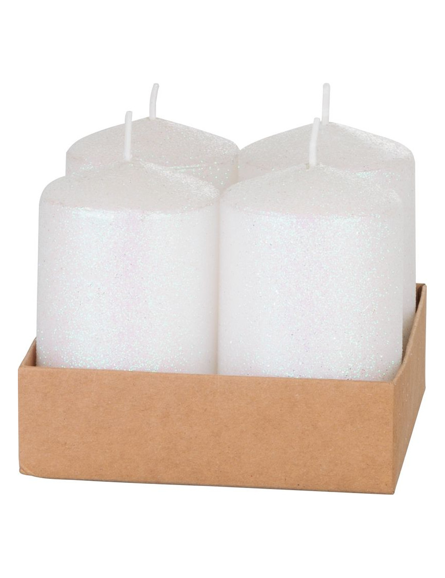 Sviečka MagicHome Vianoce, 4,8x8 cm, valcová, bal. 4 ks, biela, s glitrami, adventná