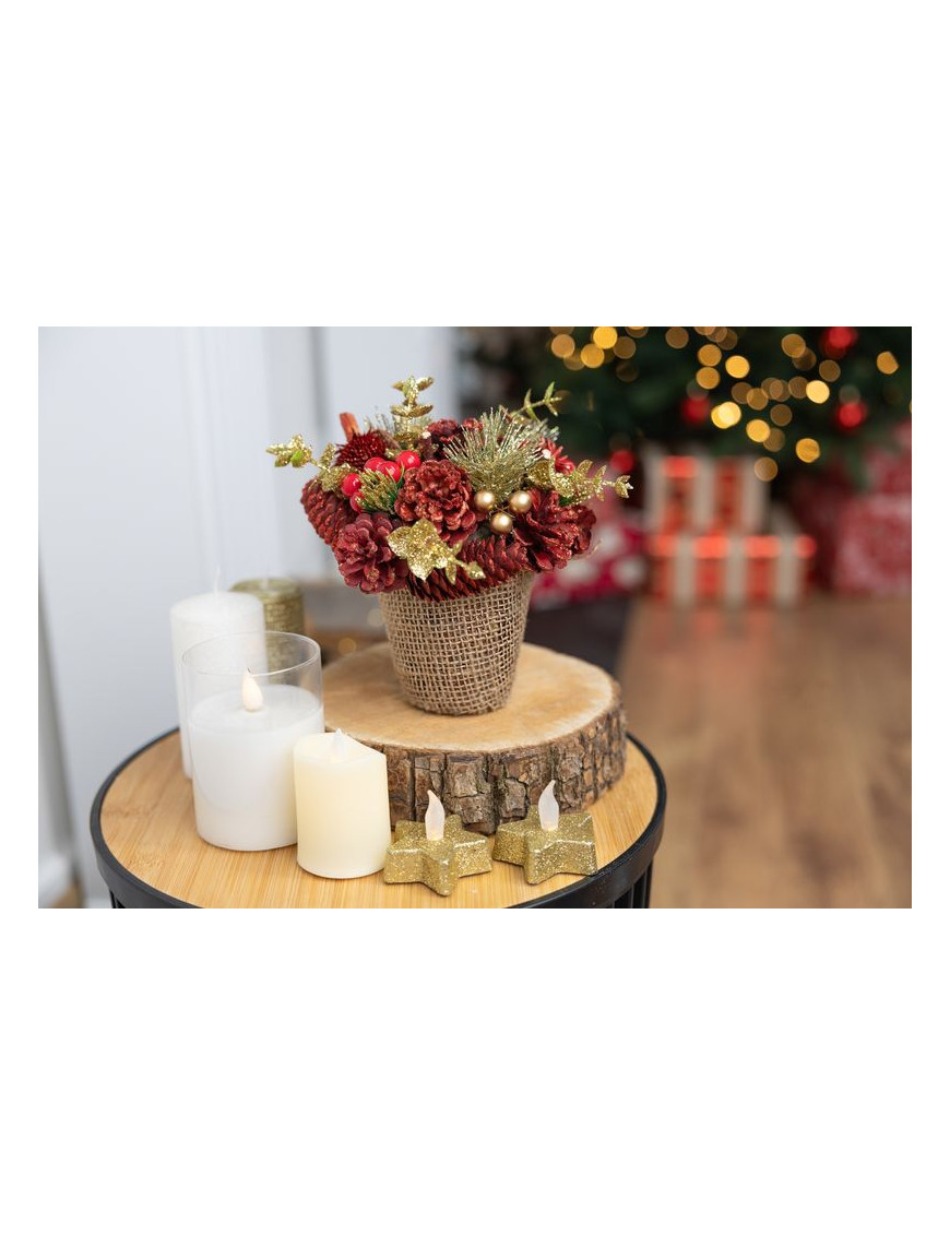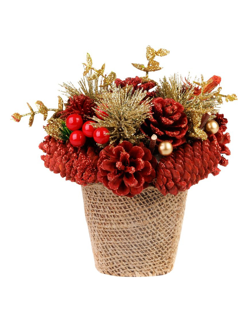 Ikebana MagicHome Vianoce, prírodná, červená, 17x17 cm