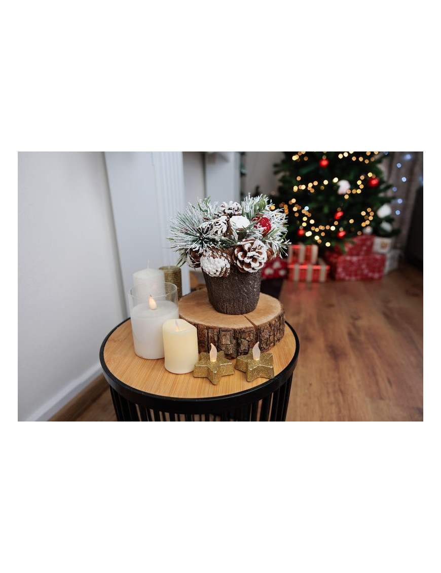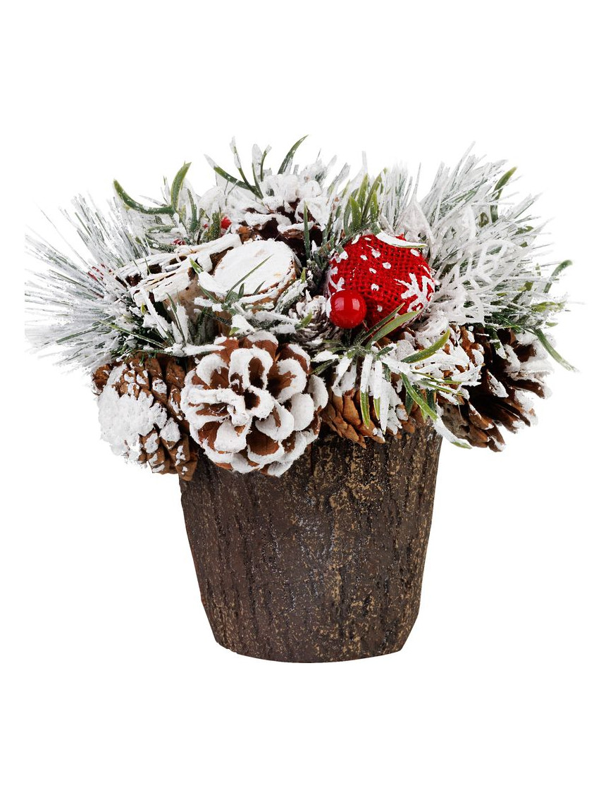 Ikebana MagicHome Vianoce, so zasneženou čečinou, imitácia deva 18 cm