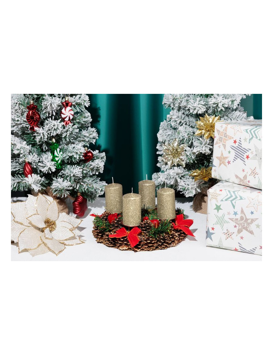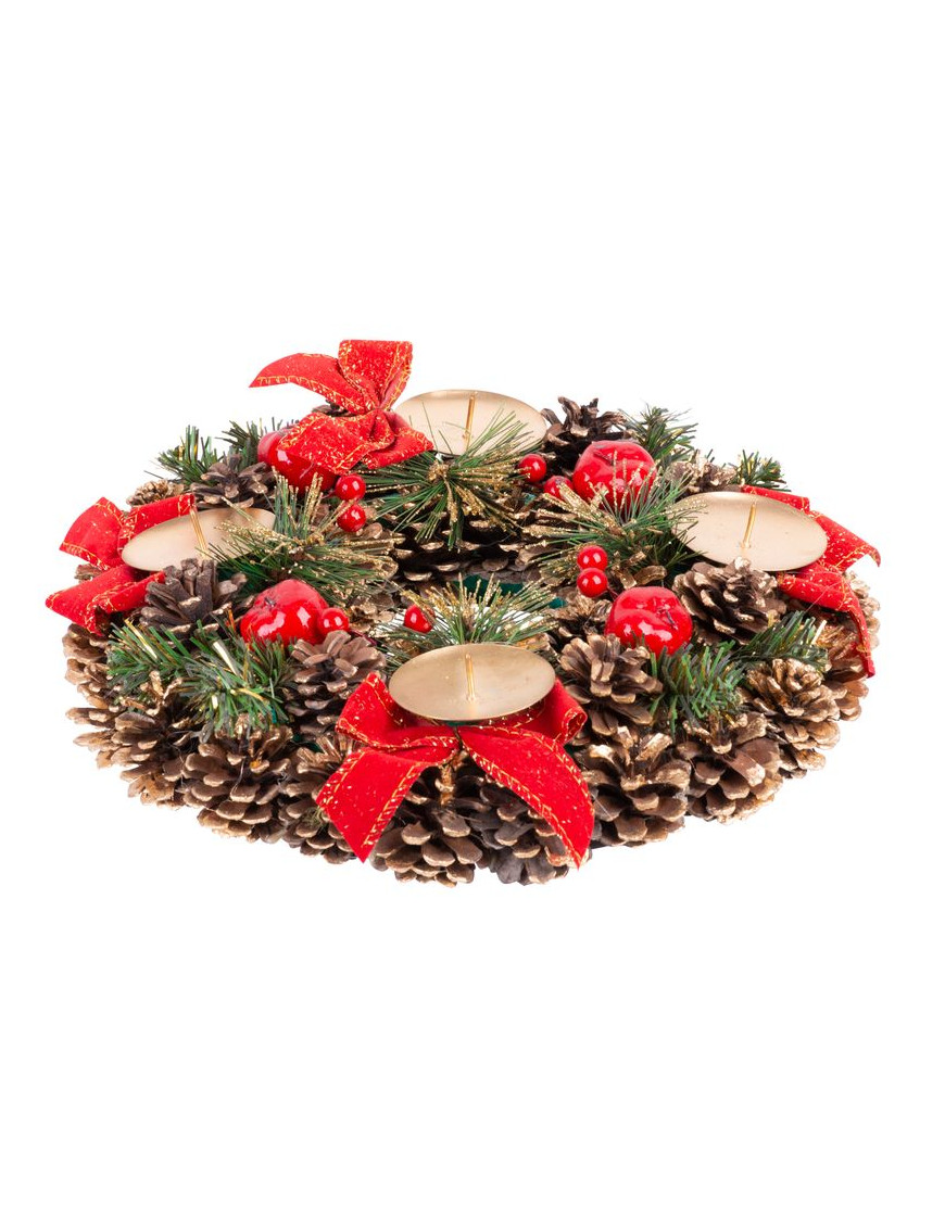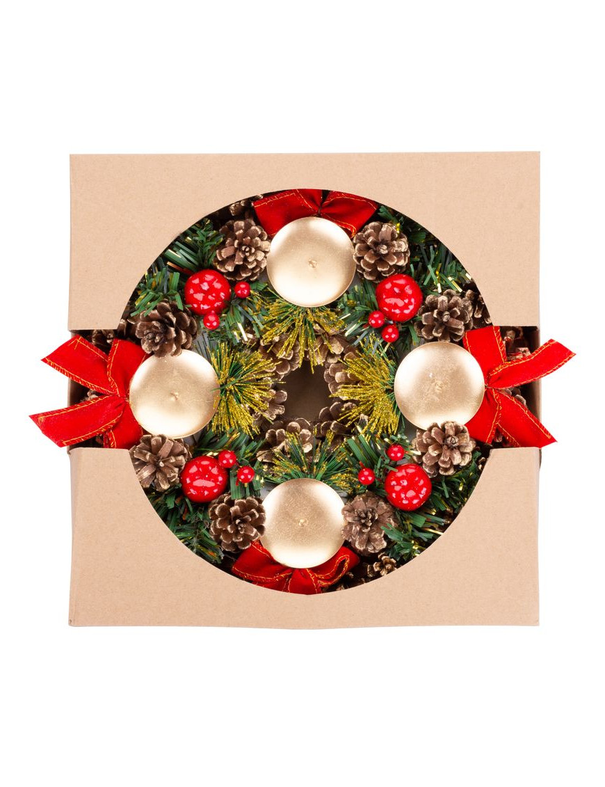 Veniec MagicHome Vianoce, prírodný, adventný, červený, 25 cm