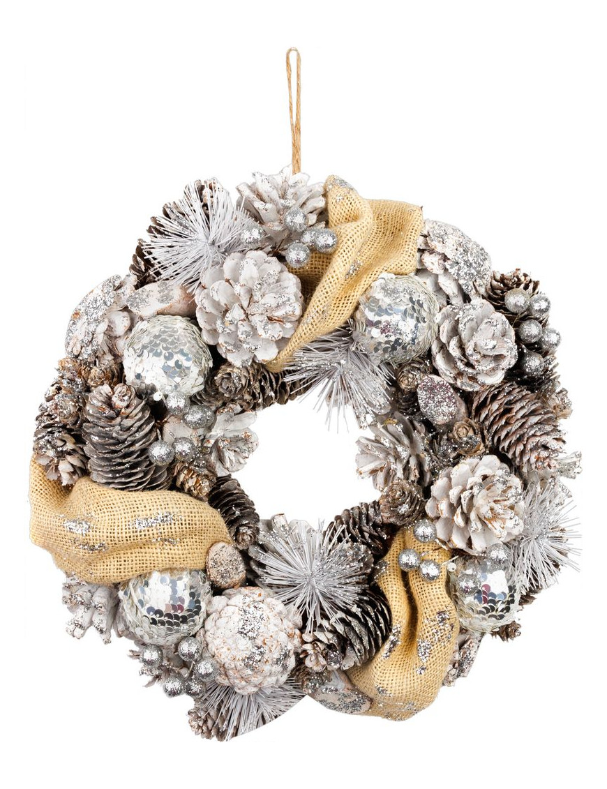 Veniec MagicHome Vianoce, prírodný, krémový, závesný, 33x9 cm