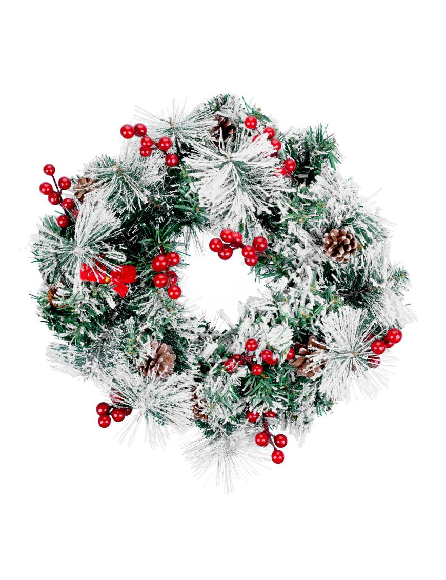 Veniec MagicHome Vianoce, prírodný, so šiškami, 20x LED, teplá biela, 3xAA, 8 funkcií, 30 cm
