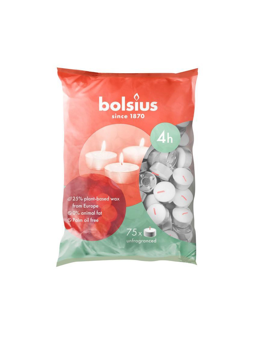 Sviečka Bolsius, čajová, 4 hod., biela, bal. 75 ks