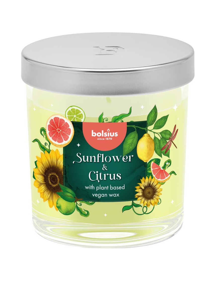 Sviečka Bolsius Floral Fusion Slnečnica a Citrus, vonná, 80/72 mm, v skle