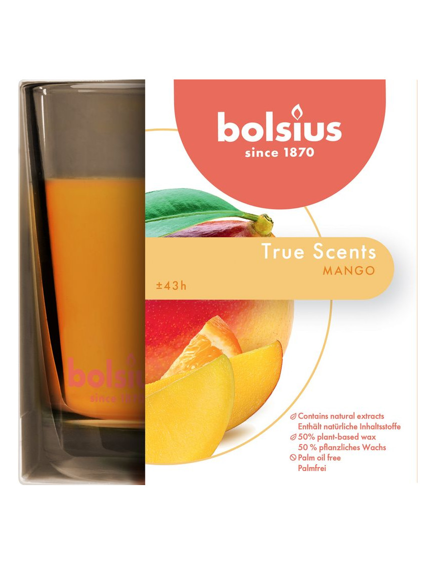 Sviečka Bolsius Jar True Scents 95/95 mm, vonná, mango, v skle