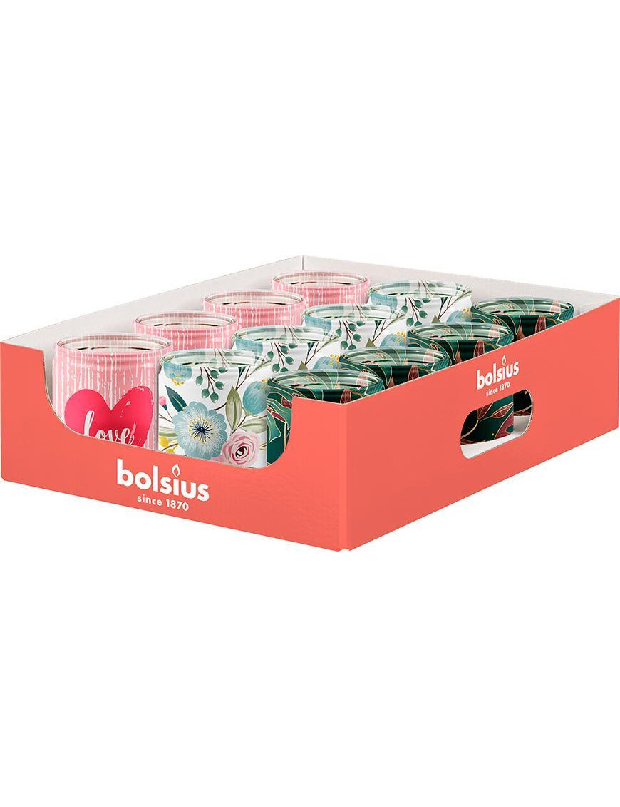 Sviečka Bolsius Star.glas Love, 82/68 mm, v skle, Sellbox 12 ks