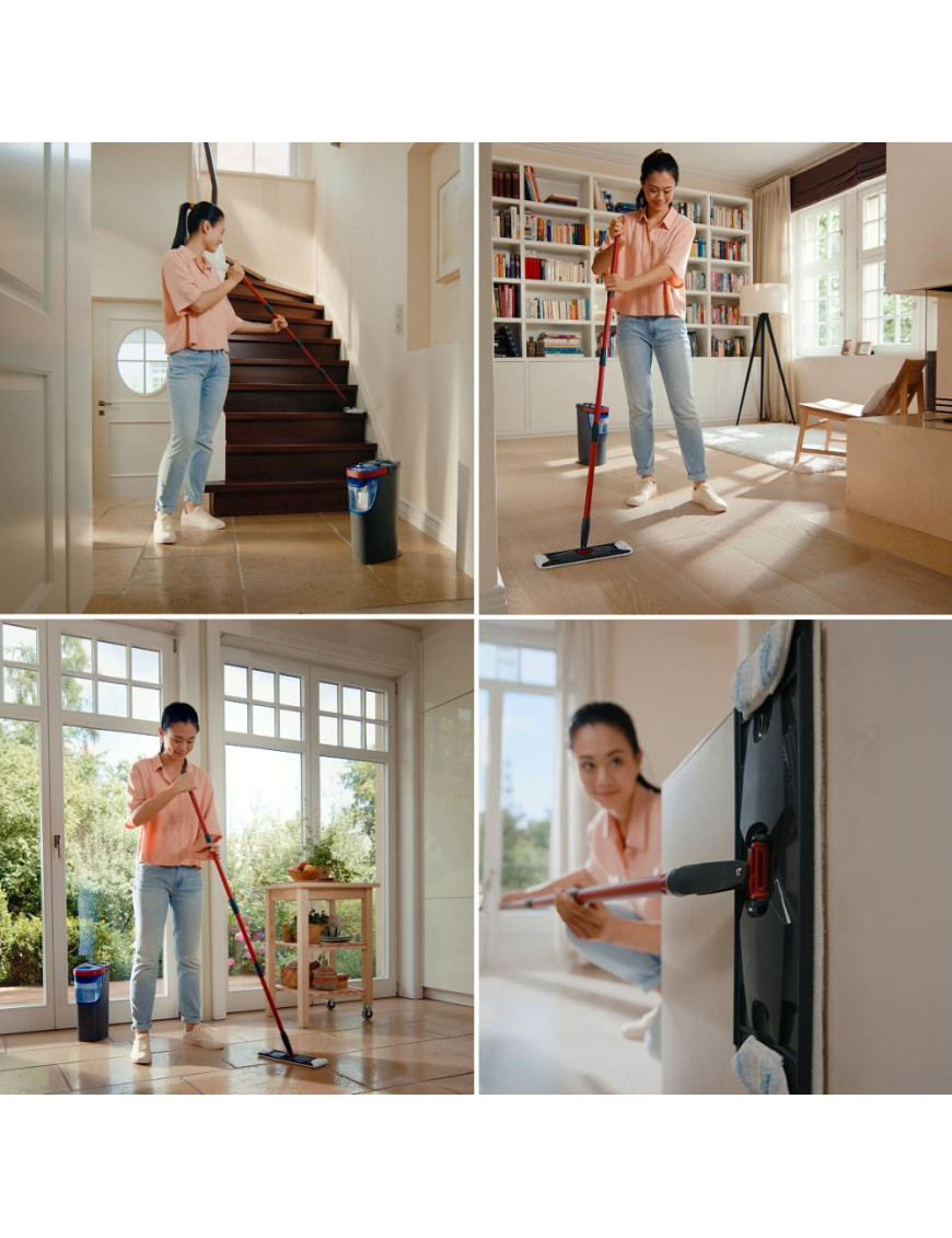 Dá sa ovládať jednou rukou a je vybavený inovatívnym mechanizmom na žmýkanie, ktorý uľahčuje mopovanie a znižuje fyzickú námahu