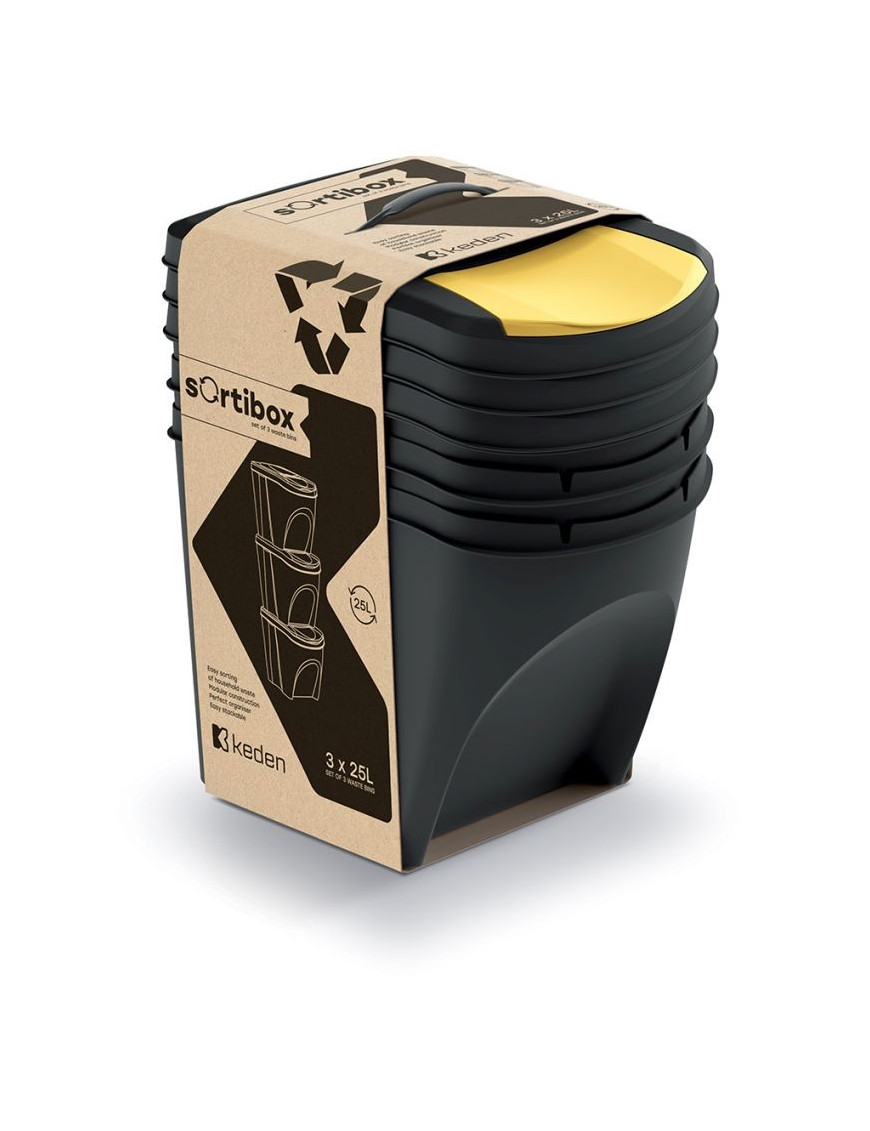 Odpadkový kôš Prosperplast SORTIBOX 3 x 25 l recyklovaný čierny