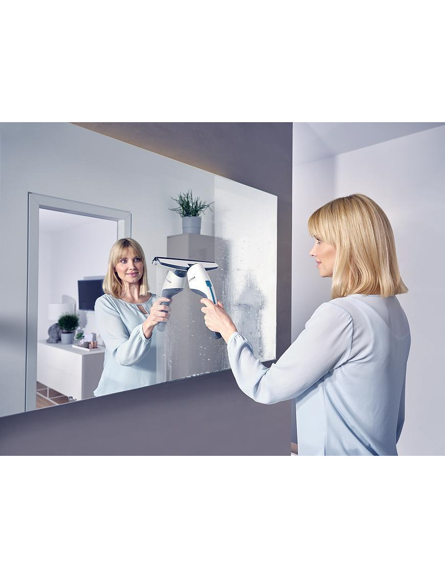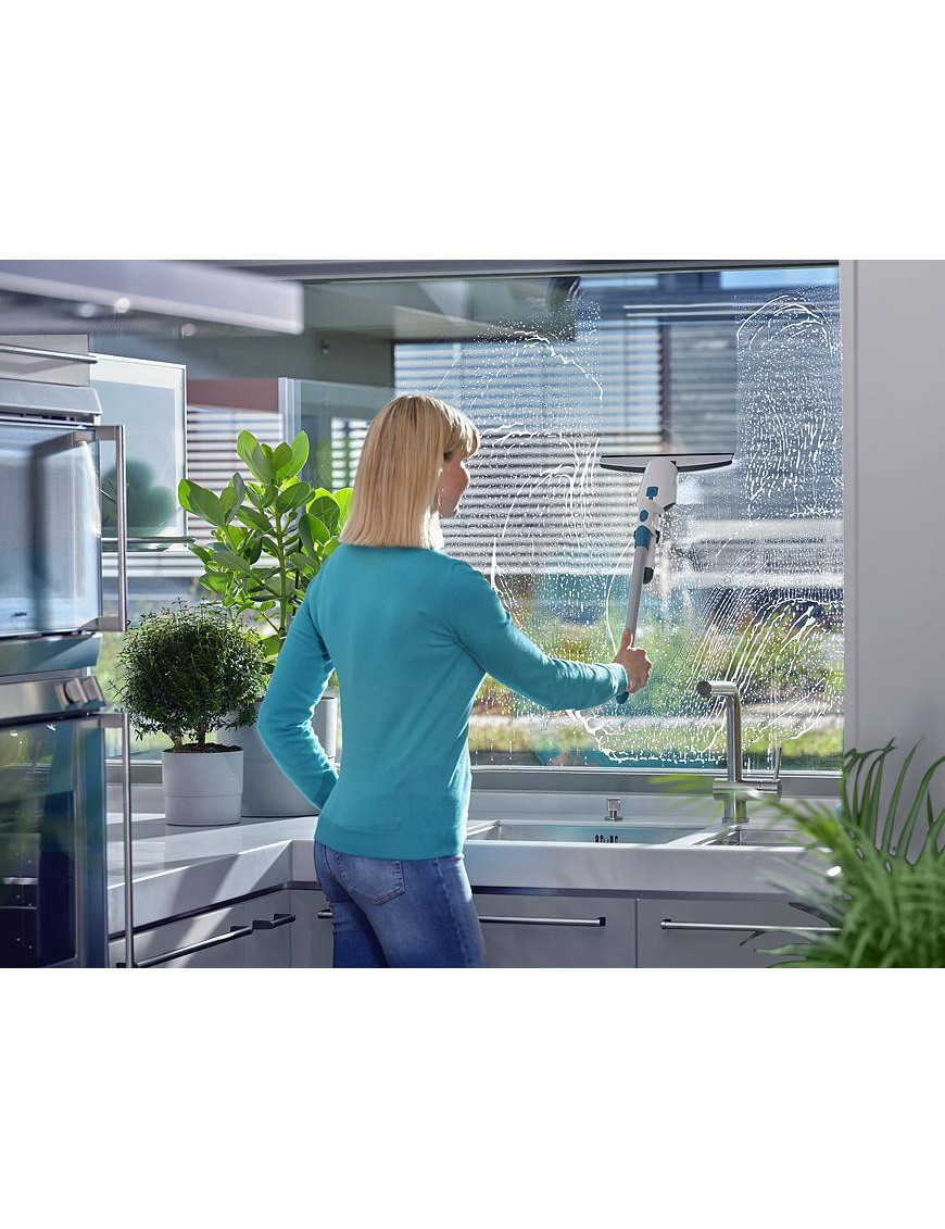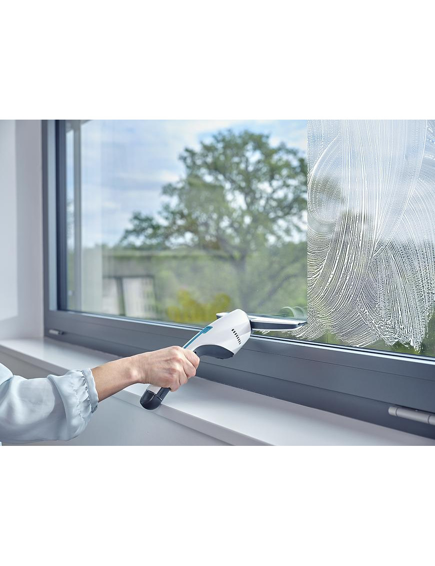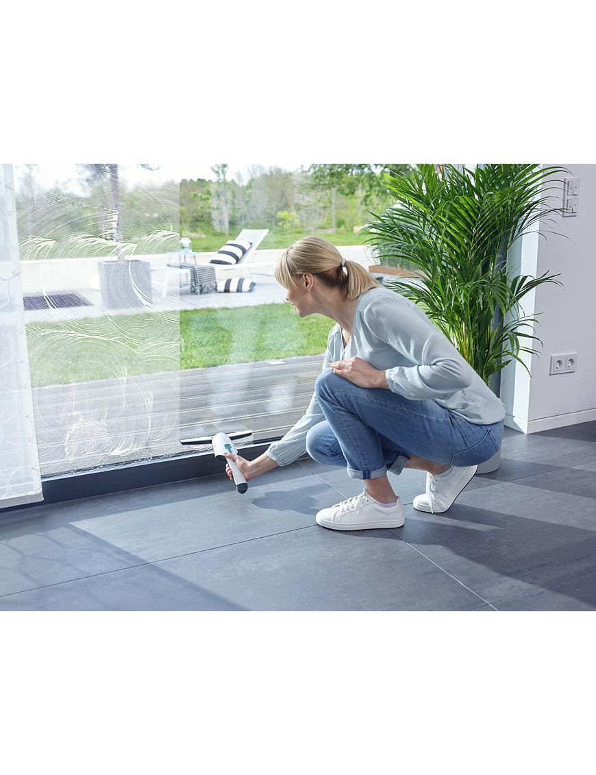 Vysáva a leští okná bez škvŕn. Inovatívne čistenie okien vďaka elektrickému odsávaniu vody. Vhodný na klasické aj strešné okná, zrkadlá, sprchové kúty, dlaždice. Extra ľahký a ergonomicky tenký dizajn pre jedinečné jednoduché používanie. Nádržka na vodu je zabudovaná priamo do rukoväte čo umožňuje rýchle čistenie až na dolné okraje okna – bez narážania na parapet. Nádržka sa ľahko a rýchlo sa vyprázdňuje. Vodeodolnosť IPX7.