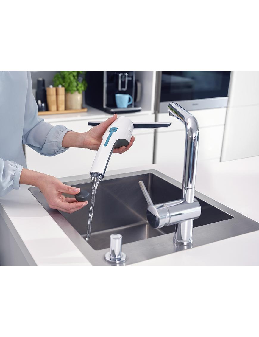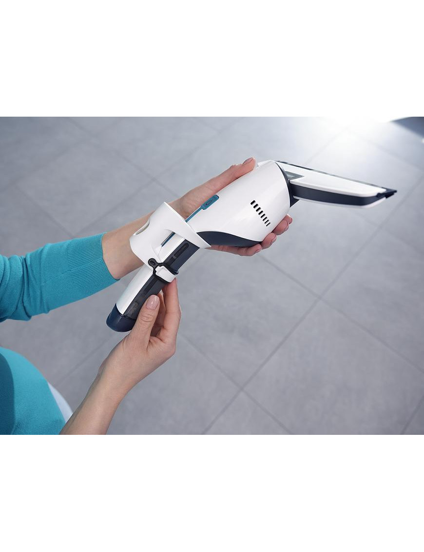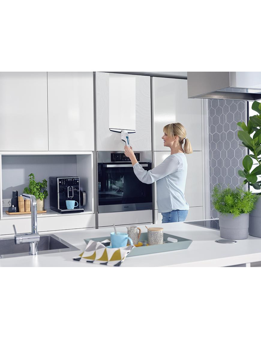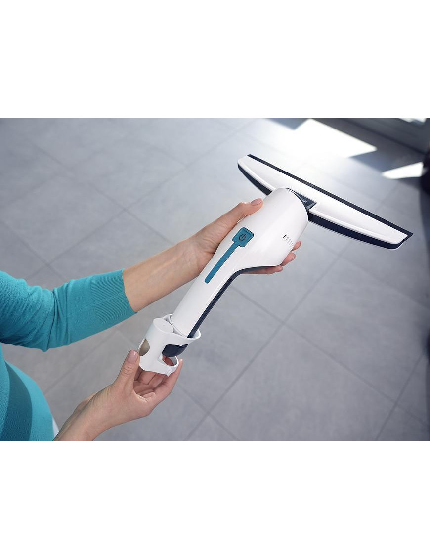 Vysáva a leští okná bez škvŕn. Inovatívne čistenie okien vďaka elektrickému odsávaniu vody. Vhodný na klasické aj strešné okná, zrkadlá, sprchové kúty, dlaždice. Extra ľahký a ergonomicky tenký dizajn pre jedinečné jednoduché používanie. Nádržka na vodu je zabudovaná priamo do rukoväte čo umožňuje rýchle čistenie až na dolné okraje okna – bez narážania na parapet. Nádržka sa ľahko a rýchlo sa vyprázdňuje. Vodeodolnosť IPX7.