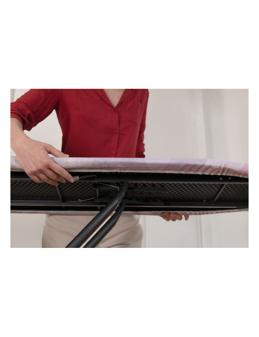 Ideálna pre všetky výšky. Žehliaca doska Diamond M má nastaviteľnú výšku až do 97 cm a je vybavená detskou poistkou, ktorá zabraňuje sklopeniu dosky pri náhodnom náraze.