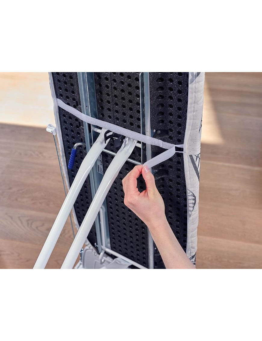 Poťah pre žehlenie s parnými generátormi alebo parnými žehličkami. Vďaka špeciálnej perforácii zaisťuje extra prepúšťanie pary, 4mm molitanové polstrovanie, vhodné pre žehliace dosky Air Steam a Air Board Express, sťahovanie šnúrkou s klipsom, pružný poťah pre ľahšiu aplikáciu na žehliacu dosku, rozmery až x 45 cm.