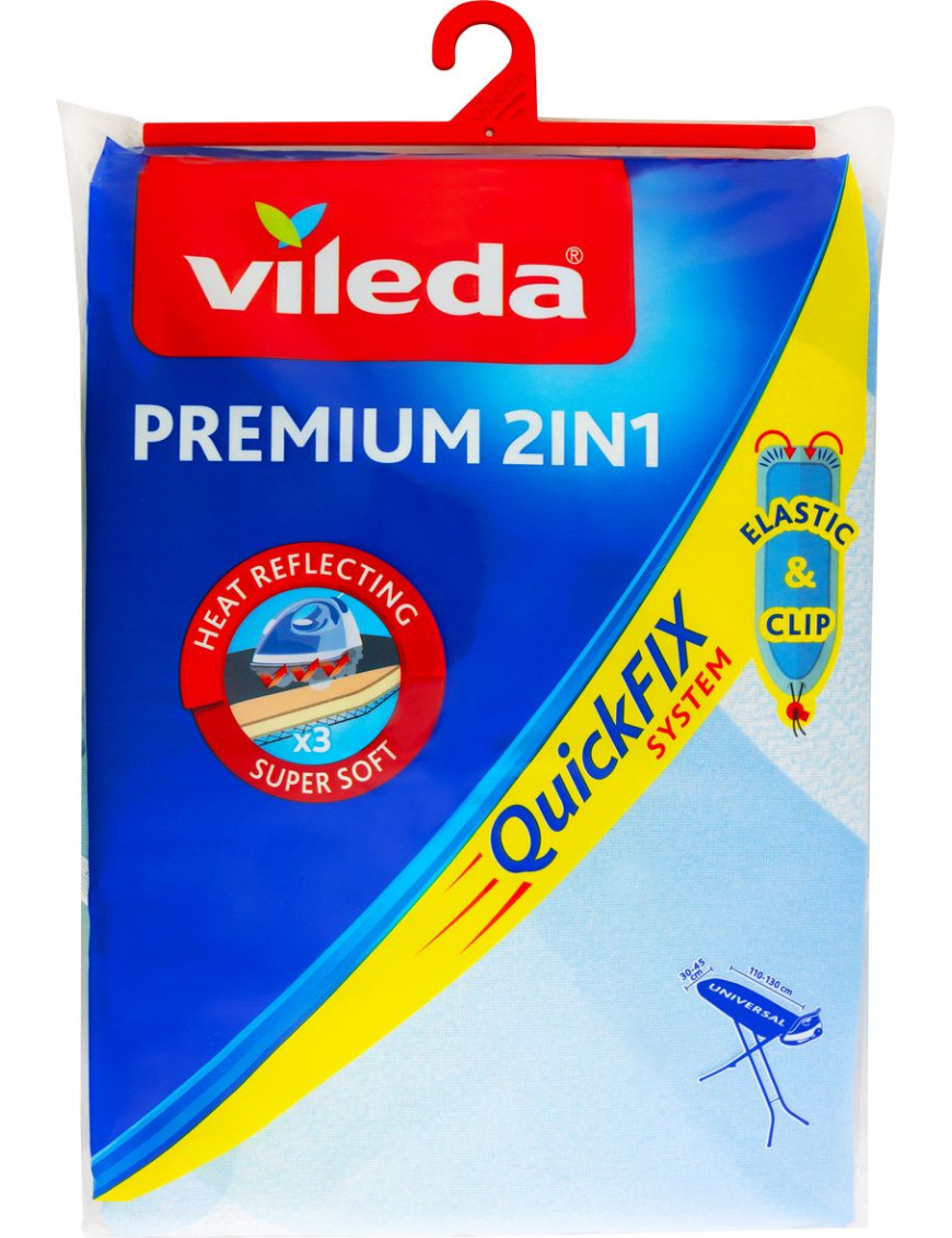 S poťahom na žehliacu dosku Premium 2v1 od značky Vileda je pre vás žehlenie ešte jednoduchšie. Vlákna odrážajúce teplo zvyšujú žehliaci výkon vašej žehličky a žehlenie sa stáva rýchlejším. Mäkký povrch chráni pred odtlačkami na bielizni, a to aj u citlivých materiálov.
