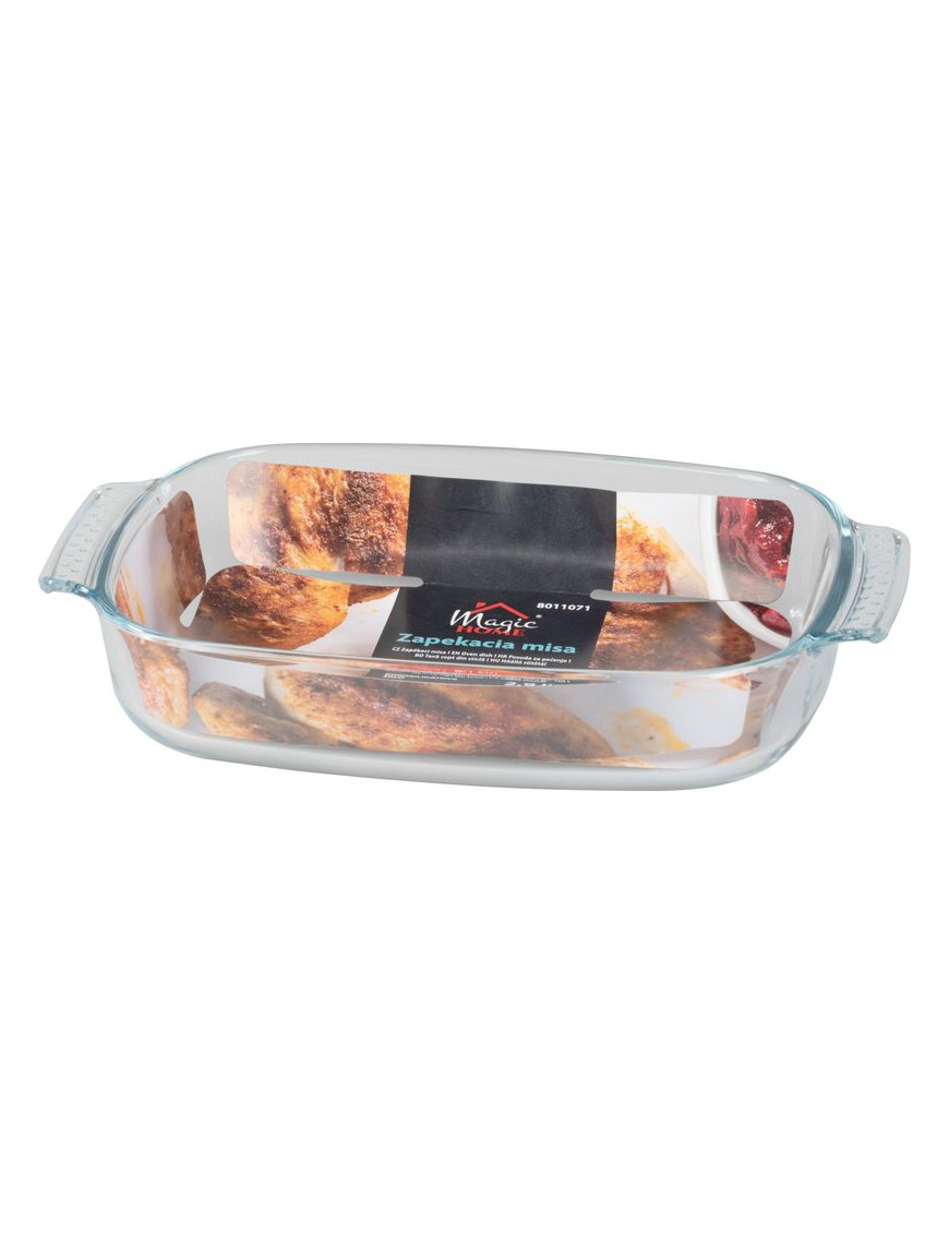 Sklenená zapekacia misa MagicHome s objemom 2900 ml je ideálna na prípravu, zapekanie a servírovanie pokrmov. Je vyrobená z odolného skla, ktoré je vhodné na použitie v rúre, mikrovlnke aj na skladovanie v chladničke.