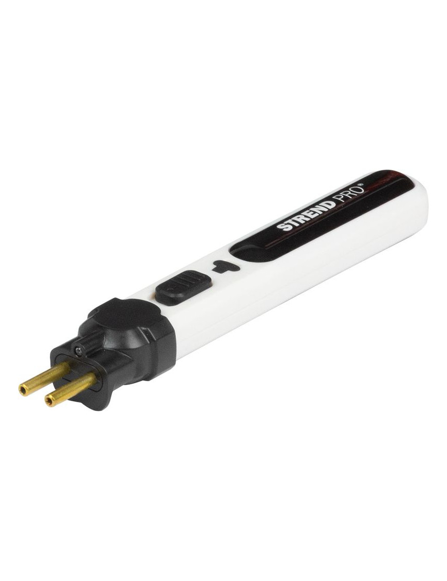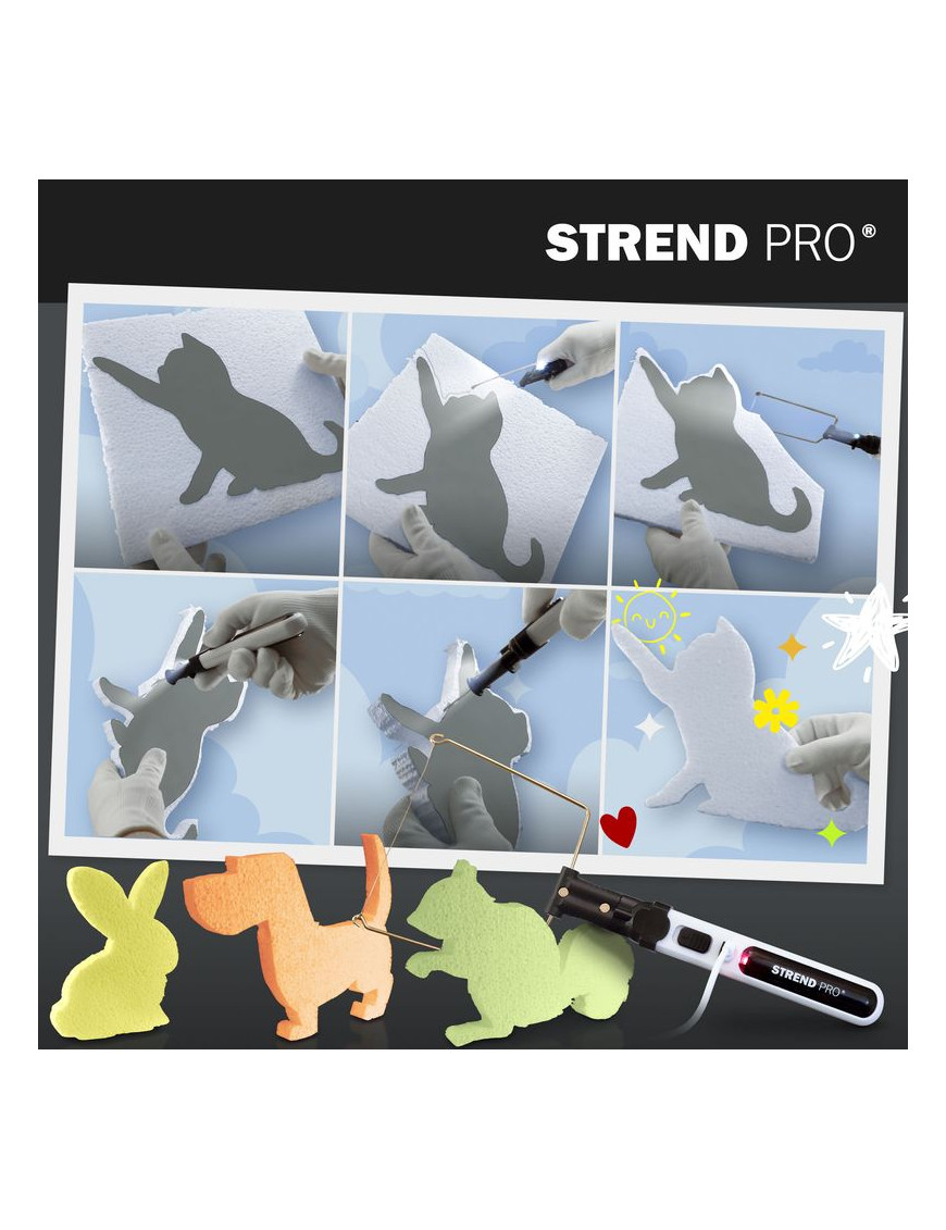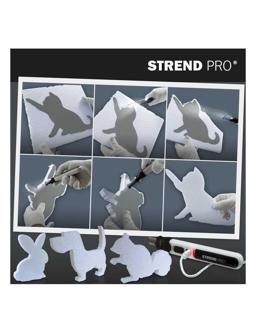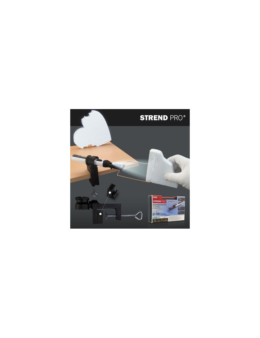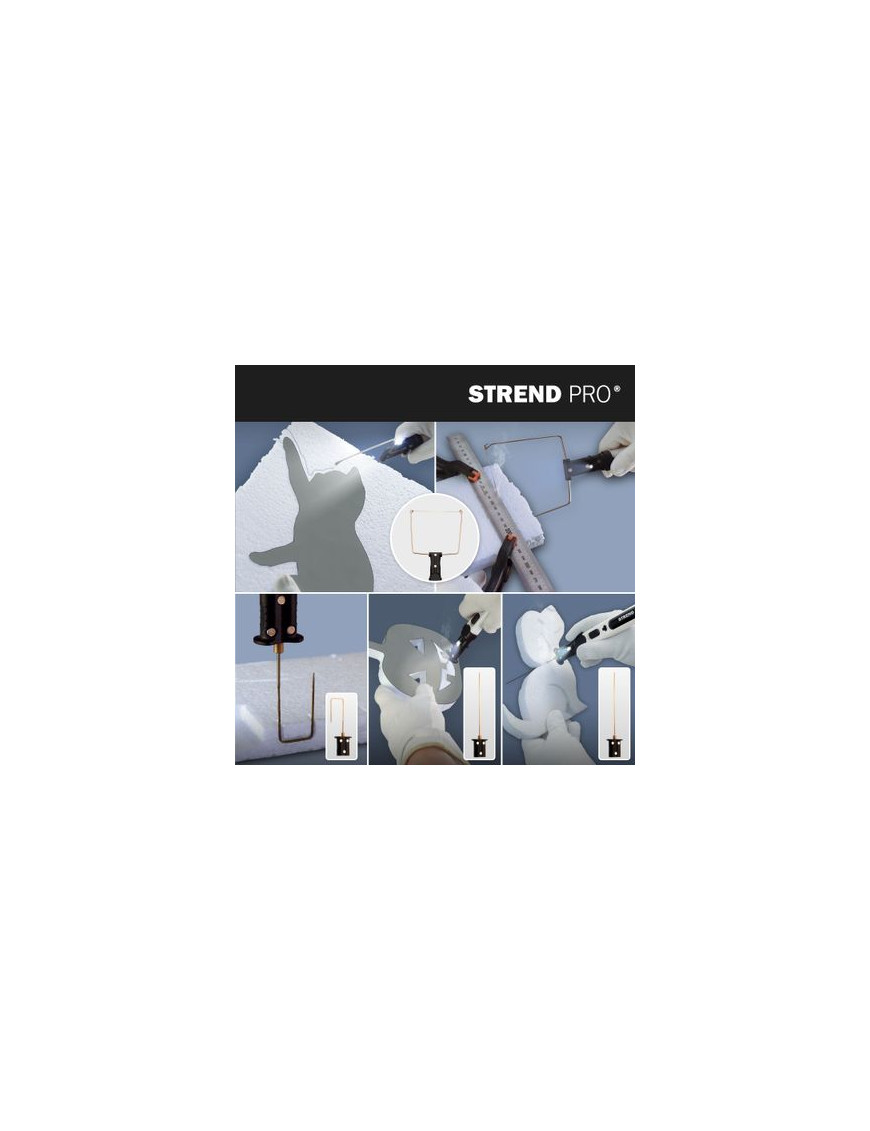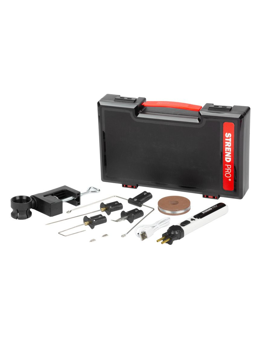 Akumulátorové pero Strend Pro je určené na jemné a presné tvarové vyrezávanie pomocou rezacieho drôtu, na vykonávanie skracovacích rezov a vyrezávanie väčších predmetov nožom z polystyrénu. Sada obsahuje 4 rôzne rezacie nadstavce pre rôzne aplikácie. Vidlica s rezacím drôtom je určená na jemné a presné vyrezávanie, krájanie a tvarovanie materiálu. Rezací drôt v tvare písmena U umožňuje drážkovanie do materiálu pre osadenie káblov. Pomocou rezacej dierovacej ihly je možné vyrezávať rôzne tvary. S použitím špeciálneho hrotu na spájkovanie je akumulátorové pero na rezanie polystyrénu určené aj na vytváranie spájaných spojov pomocou cínovej spájky. Balenie obsahuje akumuátorové pero, vidlicu s rezacím drôtom (10 m x 38 mm), rezací nôž v tvare U, rezaciu ihlu, svorku na upevnenie k pracovnému stolu, nadstavec so spájkovacím hrotom a USB-C nabíjacím káblom.