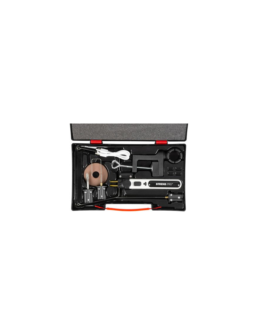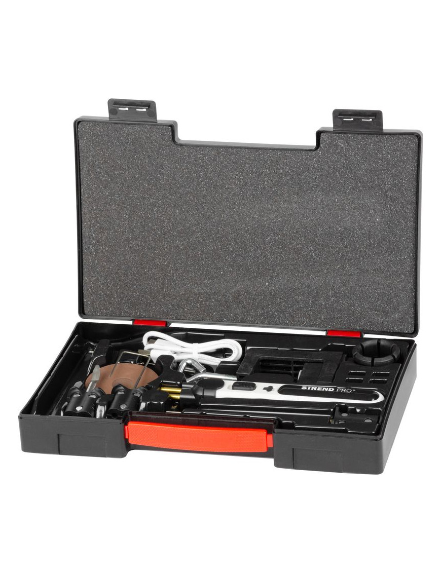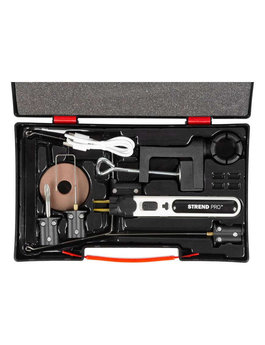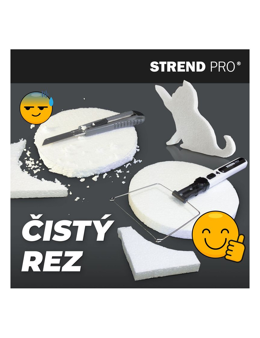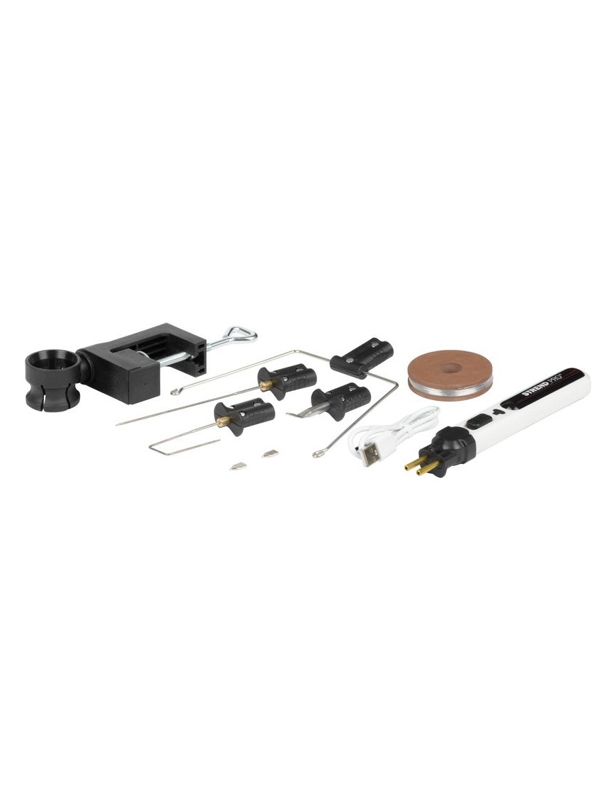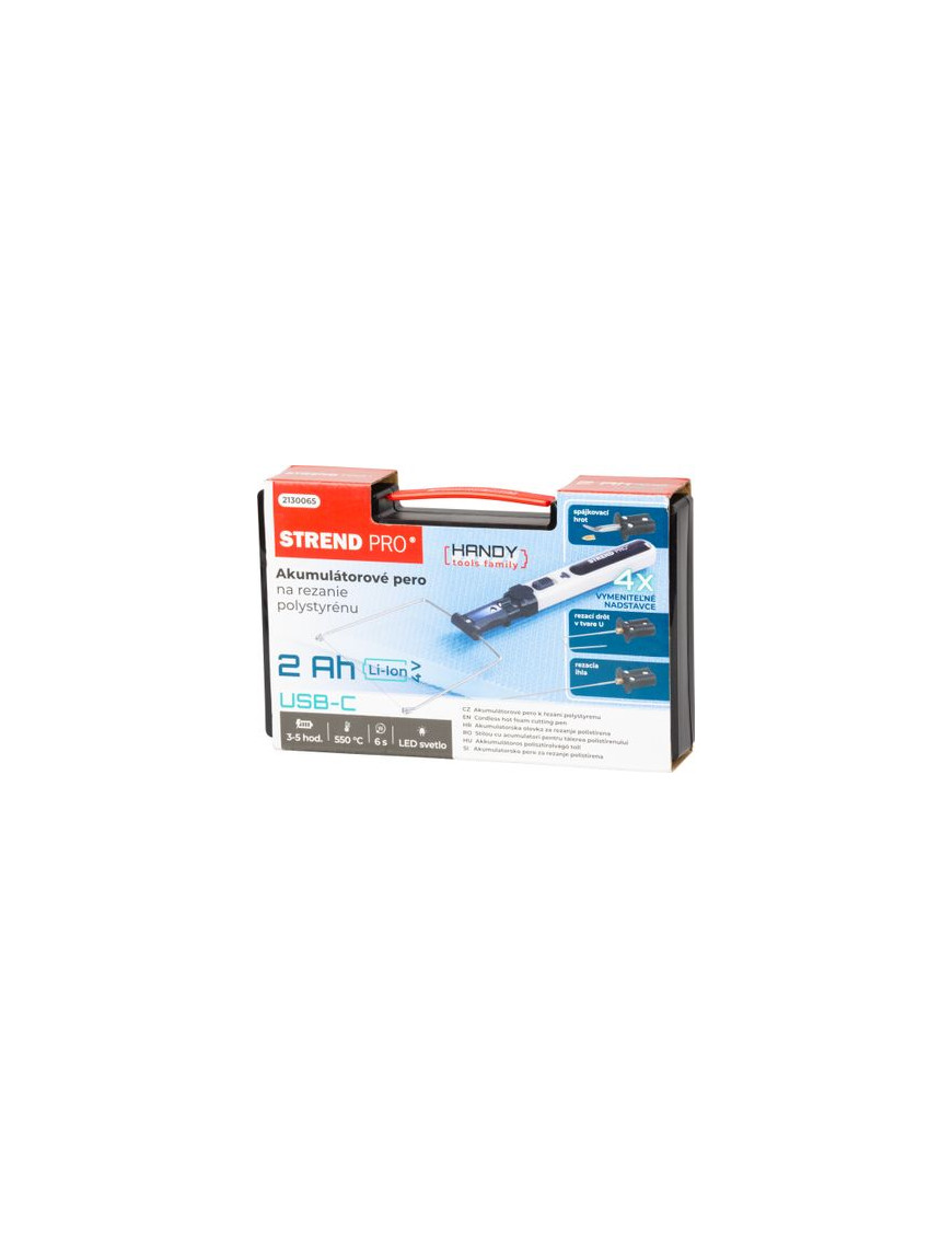 Akumulátorové pero Strend Pro je určené na jemné a presné tvarové vyrezávanie pomocou rezacieho drôtu, na vykonávanie skracovacích rezov a vyrezávanie väčších predmetov nožom z polystyrénu. Sada obsahuje 4 rôzne rezacie nadstavce pre rôzne aplikácie. Vidlica s rezacím drôtom je určená na jemné a presné vyrezávanie, krájanie a tvarovanie materiálu. Rezací drôt v tvare písmena U umožňuje drážkovanie do materiálu pre osadenie káblov. Pomocou rezacej dierovacej ihly je možné vyrezávať rôzne tvary. S použitím špeciálneho hrotu na spájkovanie je akumulátorové pero na rezanie polystyrénu určené aj na vytváranie spájaných spojov pomocou cínovej spájky. Balenie obsahuje akumuátorové pero, vidlicu s rezacím drôtom (10 m x 38 mm), rezací nôž v tvare U, rezaciu ihlu, svorku na upevnenie k pracovnému stolu, nadstavec so spájkovacím hrotom a USB-C nabíjacím káblom.