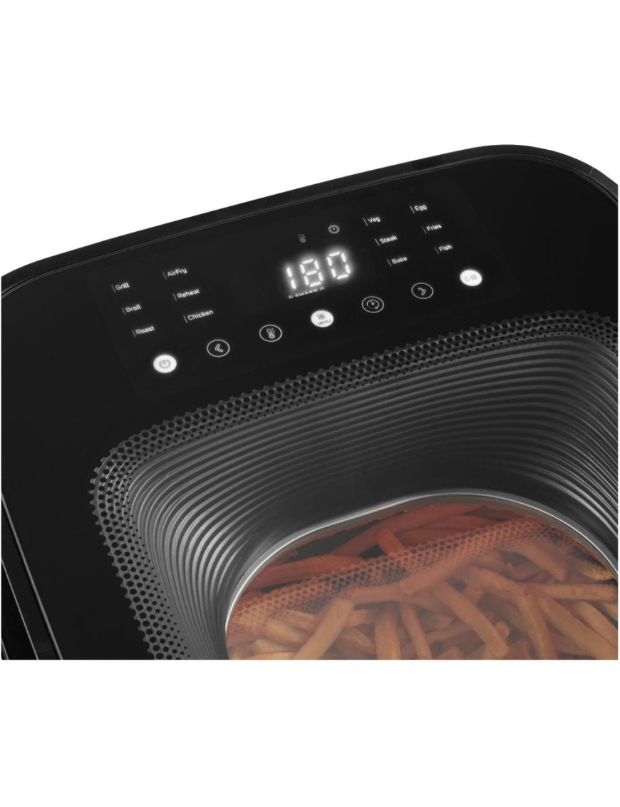 12 prednastavených programov - Air Fry, Grill, Fries, Roast, Shrimp, Fish, Vegetables, Steak, Broil, Chicken, Bake & Reheat
