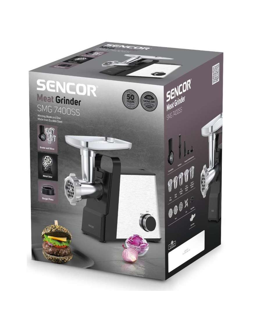 Motor s výkonom 700 W / Maximálny výkon 2 100 W | Poistná skrutka slúžiaca proti preťaženiu motora | Rýchle a jednoduché mletie rôznych druhov mäsa | Kapacita: 2,5 kg/min | 3 mlecí disky – extra jemný 3 mm / jemný 5 mm / hrubý 8 mm | Mlecí nôž a kotúče vyrobené z odolnej nehrdzavejúcej ocele | Hliníková plniaca tácka | Zatl...