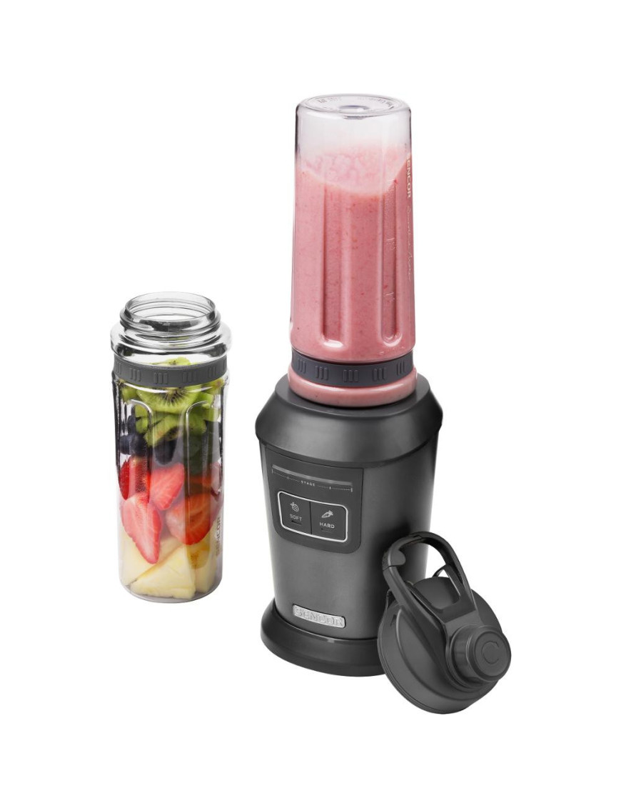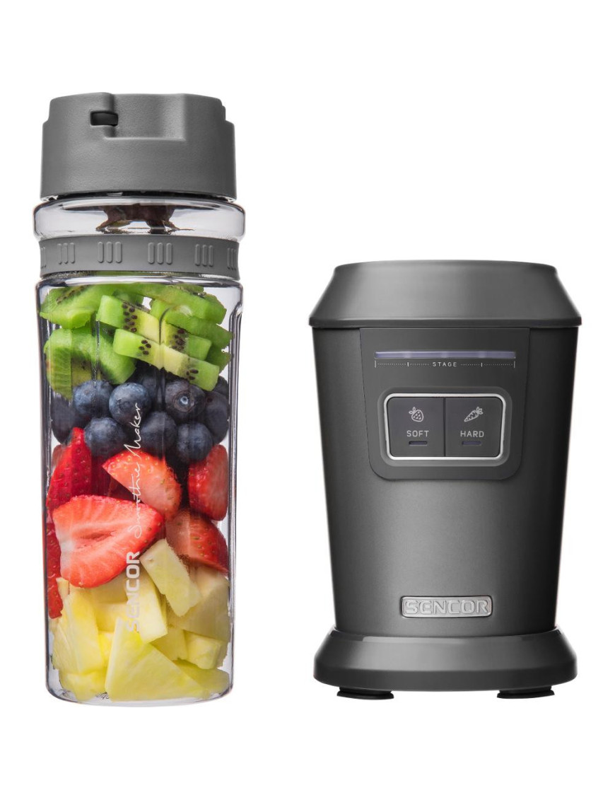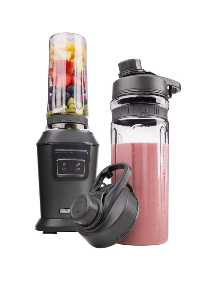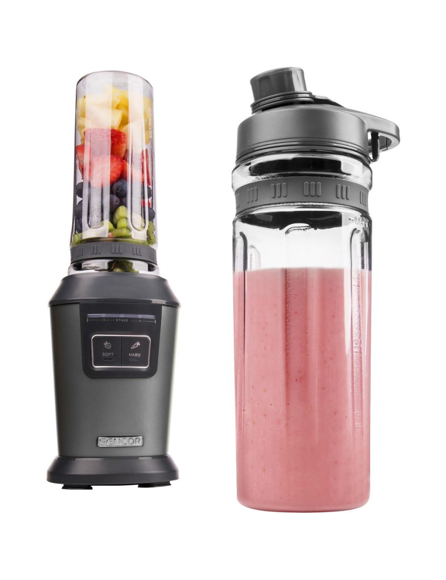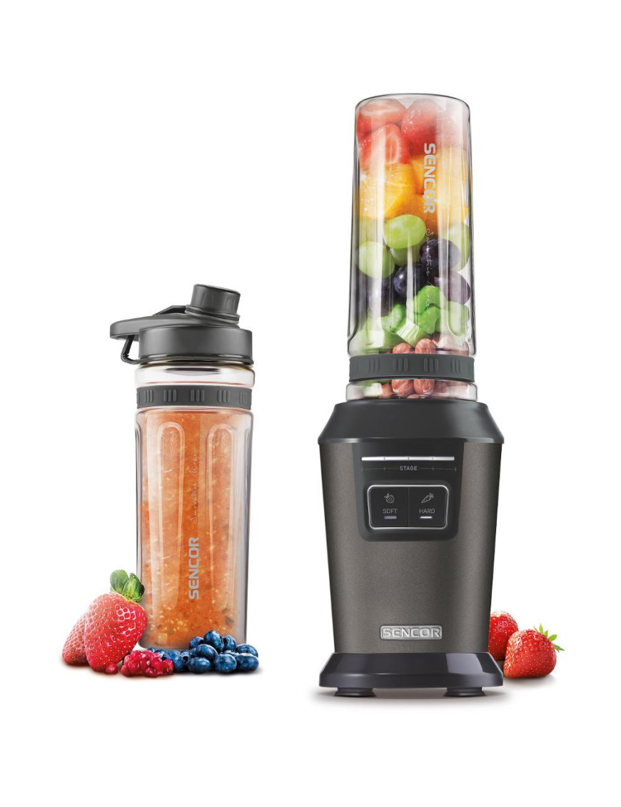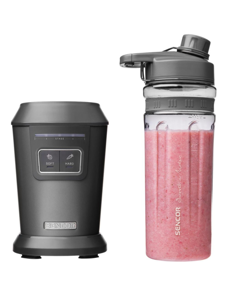 Automatický mixér na Smoothie Dva prednastavené programy 45/60 sekúnd: SOFT pre jemné koktejly (ovocie / zelenina ako sú jahody, paradajky a pod. a HARD (pre ovocie / zeleninu ako sú ananás a mrkva) Unikátna športová fľaša 0,6 l vhodná na prenášanie na tréning Fľaše vyrobené z nárazovo odolného TRITANU bez obsahu BP...