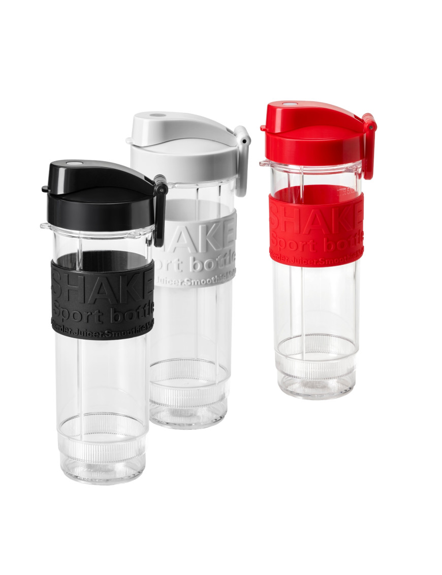 - Set obsahuje mixér + 3 mixovacie plastové nádoby: bielu s objemom 570 ml, čiernu s objemom 570 ml a červenú s objemom 400 ml