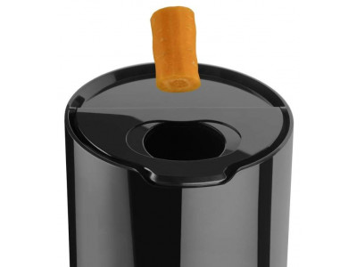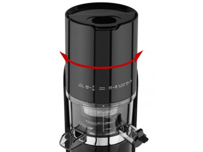 Má špeciálny dizajn určený na vkladanie veľkých kusov ovocia a zeleniny a pracuje veľmi ticho. Vybrať si môžete zo 4 nastavených režimov podľa surovín a z 3 oceľových sitiek podľa požadovaného výsledku - od čistej šťavy, cez smoothie s vyšším obsahom vlákniny, až po základ na zmrzlinu.
