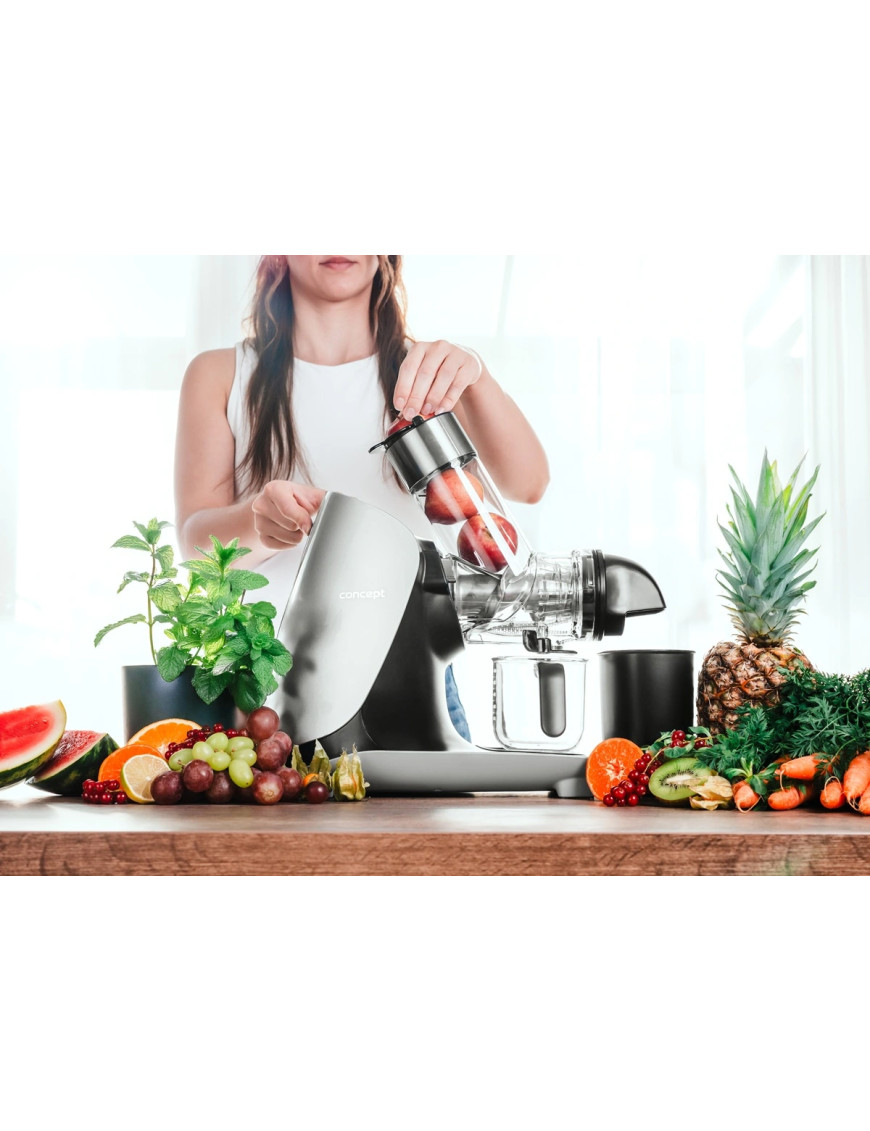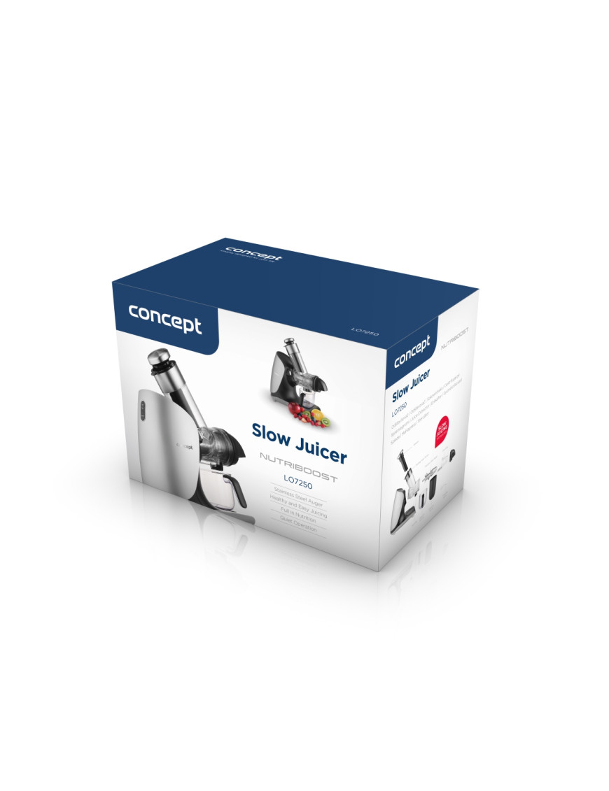 Pokiaľ si radi doprajete pohár čerstvej šťavy z ovocia alebo zeleniny, šnekový odšťavovač Concept LO7250 Nutriboost je pre vás ideálnou voľbou. Pomalý proces odšťavovania v kombinácii s horizontálnou polohou hriadeľa a vysoko kvalitným nerezovým šnekom zaistí efektívne spracovanie ovocia, zeleniny i bylín s maximálnou výťažnosťou šťavy a minimom odpadu. Nízkootáčkový systém zaisťuje šetrné odšťavovanie, ktoré zachováva cenné vitamíny, enzýmy a prirodzenú chuť surovín.