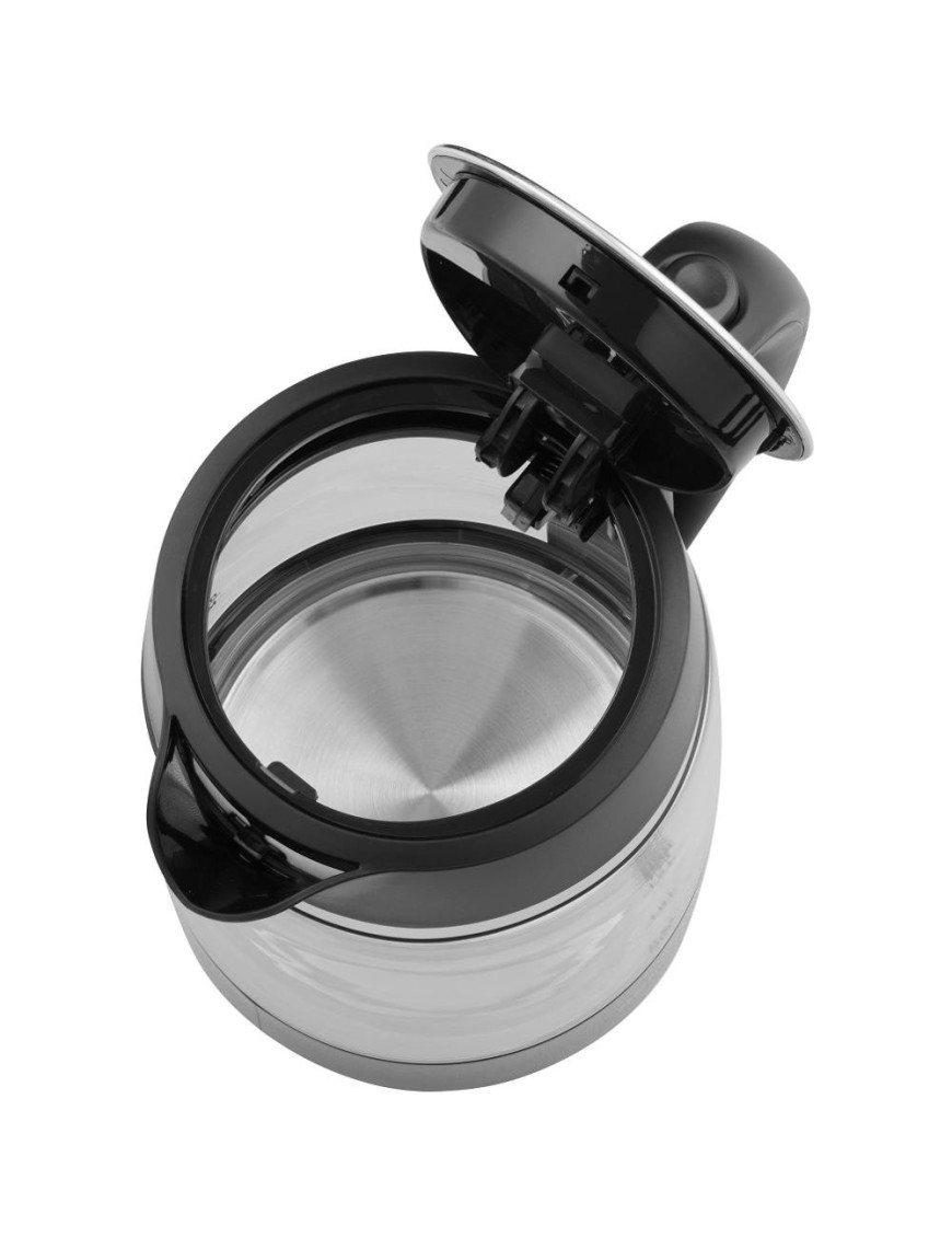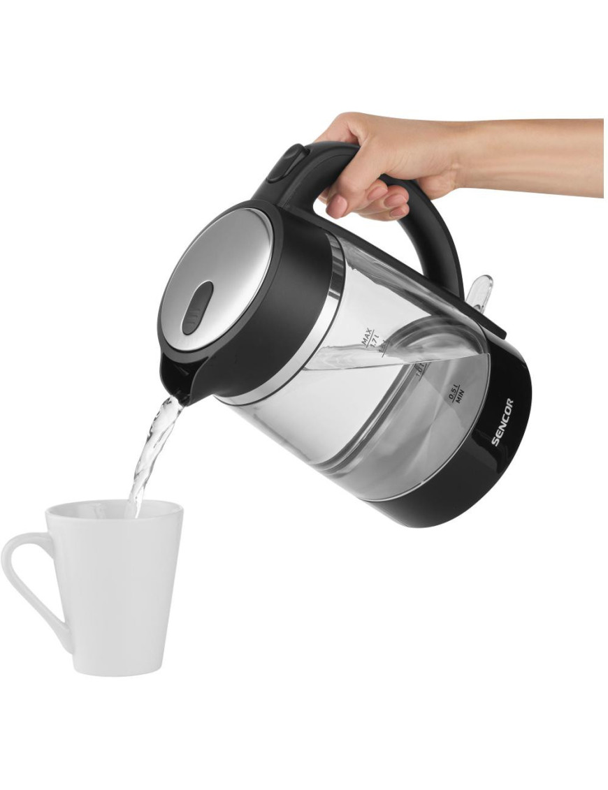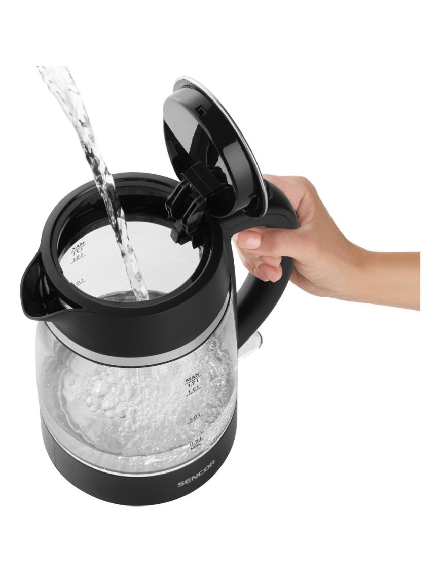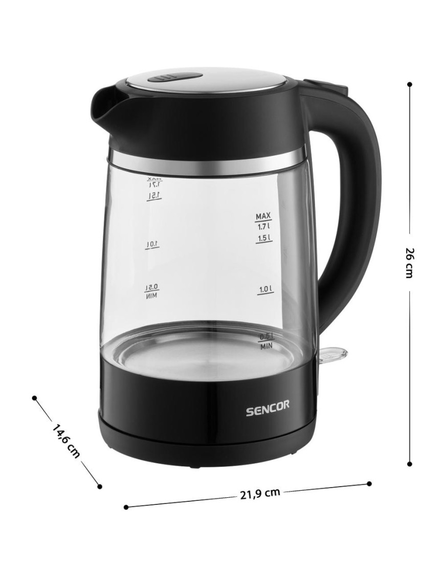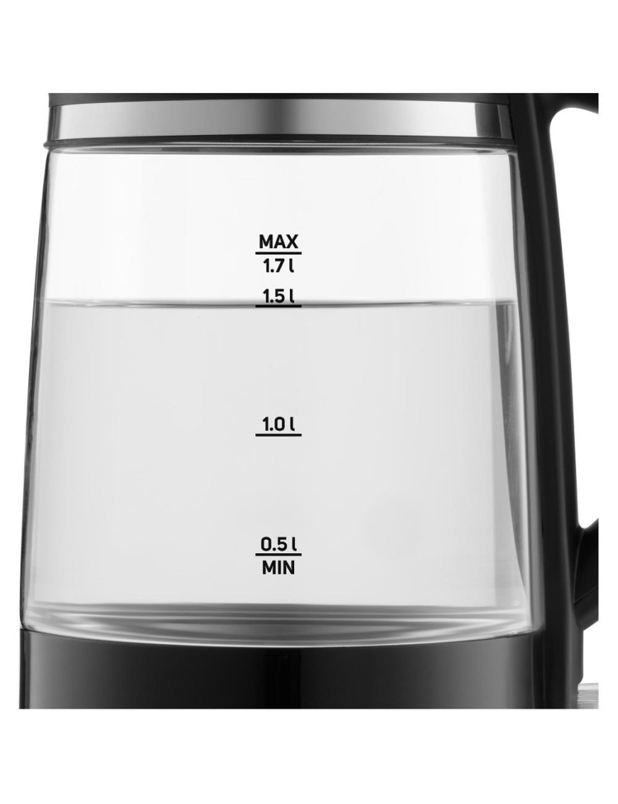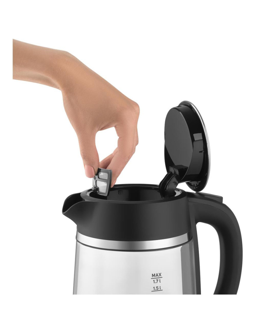 Varte vodu rýchlo a bezpečne s touto rýchlovarnou kanvicou s objemom 1,7 l vyrobenou z odolného borosilikátového skla, ze série Dark Line. ktoré je odolné voči náhlym zmenám teploty. Je navrhnutá pre väčšie pohodlie, má obojstrannú značku hladiny vody, automatické otváranie veka a vyberateľný filter proti vodnému kameňu. Nerezová vykurovacia základňa so skrytým prvkom zabezpečuje rýchly ohrev pri príkone 2 200 W, zatiaľ čo zabudované bezpečnostné funkcie, ako je ochrana proti vyvareniu a prehriatiu, automatické vypnutie a 360° konektor STRIX, poskytujú pokoj. Ďalšie prvky, ako je úložný priestor na napájací kábel a kontrolka zapnutia, robia z tejto kanvice praktický doplnok do každej kuchyne.