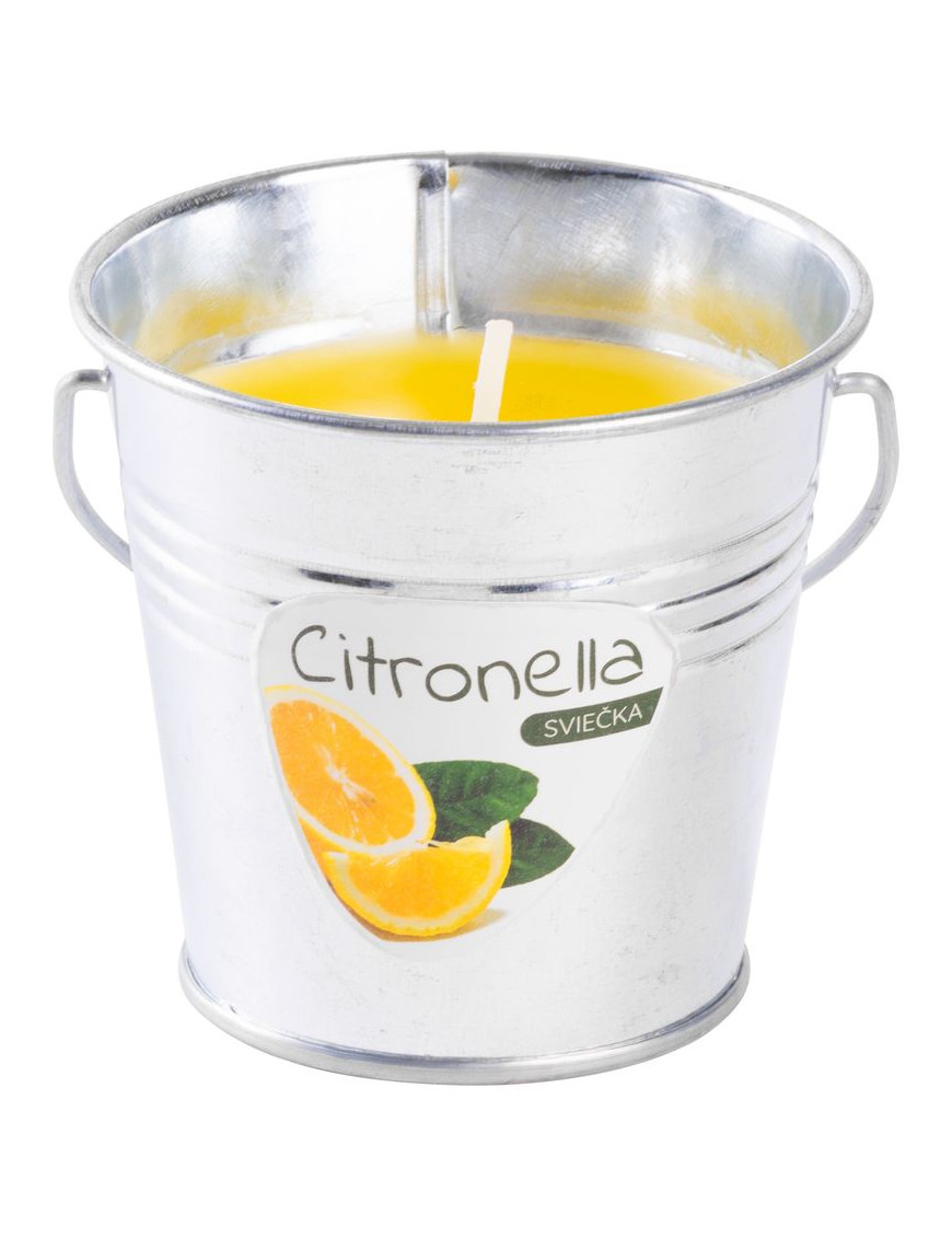 Sviečka Citronella vo vedierku prevonia Váš domov sviežou citrusovou vôňou. Obsahuje 3% vonnej zložky. Približná doba horenia : 11 hodín. Váha vosku: 80 g. Rozmery : 80x72 mm.