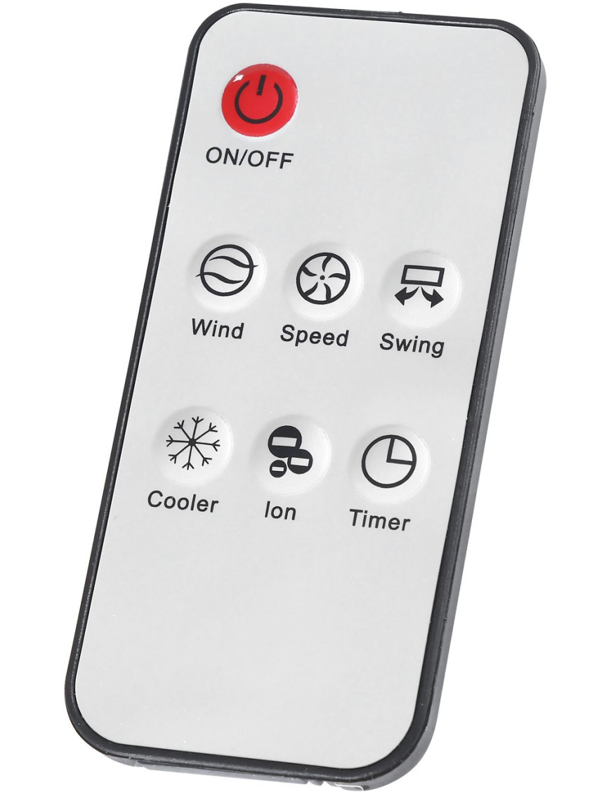Na ovládacom dotykovom paneli sa nachádza 6 tlačidiel na manuálne ovládanie ochladzovača. Tlačidlo ION - funkcia ionizácie, SWING slúži na zapnutie funkcie fúkania, COOL zabezpečuje funkciu chladenia a zvlhčovania, TIMER - nastavenie časovača, WIND - nastavenie typu prúdenia vzduchu, SPEED – nastavenie úrov...