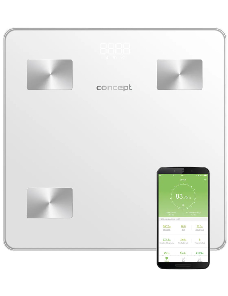 So šikovnou osobnou váhou Concept VO4000 Perfect Health budete mať svoje zdravie pod kontrolou. Okrem telesnej hmotnosti dokáže analyzovať ďalších 12 parametrov vr. telesného tuku, svalovej hmoty alebo metabolického veku. Dosahuje nosnosť 180 kg s minimálnou merateľnou hodnotou 0,2 kg.