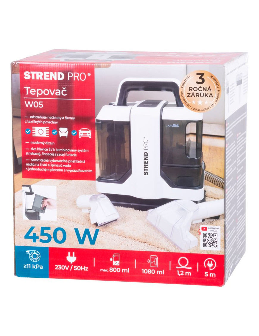 Tepovač Strend Pro W05, 450 W, čistič škvŕn, kábel 5 m, sacia hadica L-1,2 m