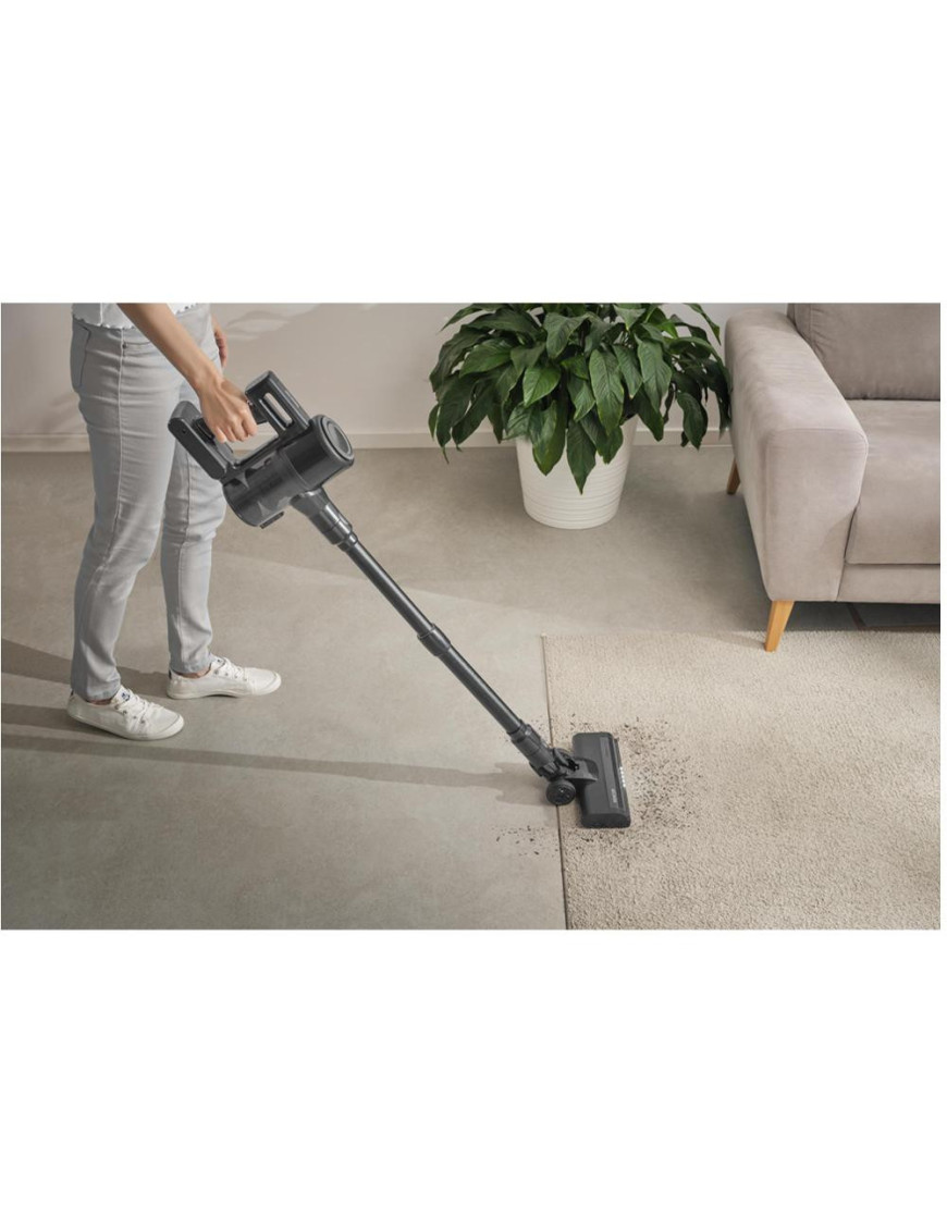Objavte silu a eleganciu v jednom. Tyčový vysávač Sencor SVC 7221BK 2 v 1 s odnímateľnou ručnou jednotkou sa stane nepostrádateľným pomocníkom pre každodenné upratovanie. Je vybavený výkonným 200#W digitálnym motorom a rotačnou kefou s vlastným pohonom, ktorá hravo zvládne koberce aj tvrdé podlahy. LED osvetlenie na hubici odhalí aj najmenší neporiadok. Vďaka vysoko účinnej 22,2#V Li Ion batérii s kapacitou 2#600#mAh máte úplnú slobodu pri upratovaní bez káblov. Na jedno nabitie vydrží až 35#minút v denných režimoch.