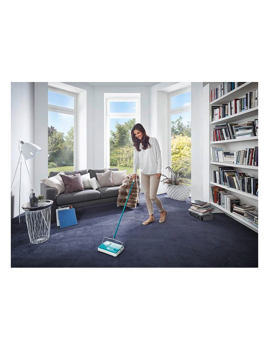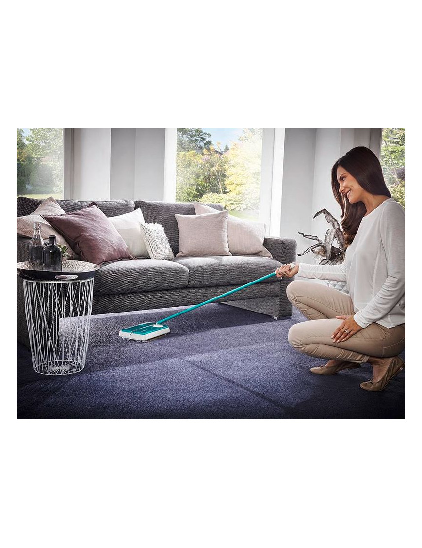 Rýchlo zametá prach, špinu, vlasy, chlpy a drobné nečistoty z kobercov, použitie bez elektrickej energie, tri otočné kefy, šírka kief 22 cm, veľký otočný gombík na regulovanie výšky, sklopná rukoväť na upratovanie pod nábytkom, 2 roky záruka.