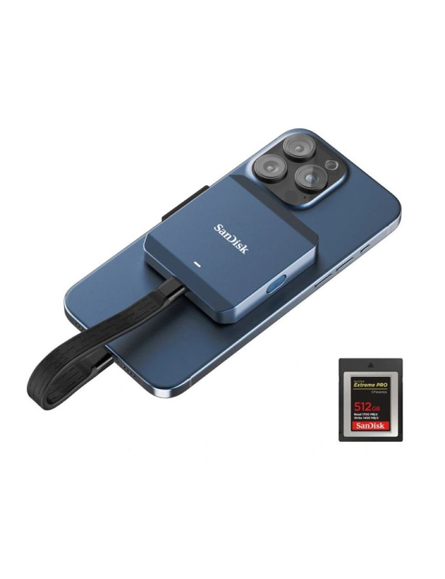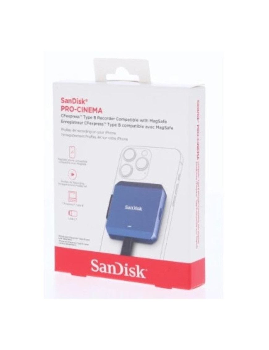 SanDisk CFexpress Type B rekordér je čítačka navrhnutá pre iPhone 15 Pro a Pro Max, ideálna pre filmových tvorcov. Umožňuje nahrávanie vo formáte ProRes s rozlíšením 4K až do 60 fps priamo na kartu CFexpress Type B (kartu treba zakúpiť samostatne). Disponuje magnetickým pripojením pre jednoduché použitie a má robustnú kovovú konštrukciu s modrým metalickým povrchom. Rozhranie USB 3.2 Gen 2 x2 zabezpečuje rýchly prenos dát. V balení je kábel USB-C na USB-C, čo uľahčuje pripojenie. Kompatibilný s