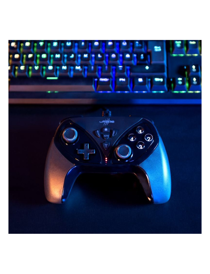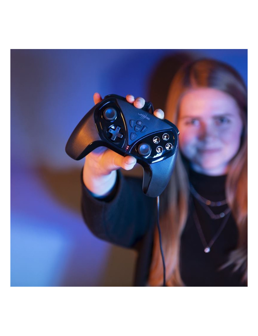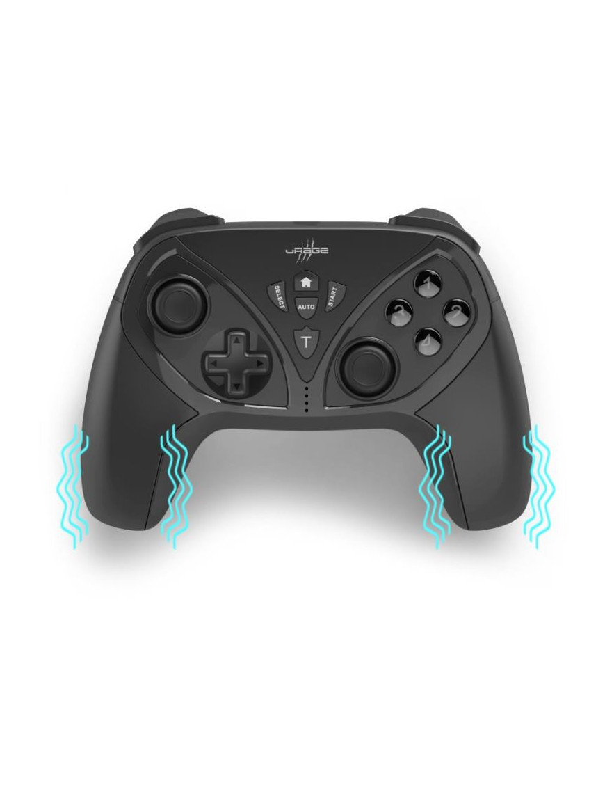 Bezdrôtový ergononomický gamepad Vendetta 300 Unleashed od nemeckej značky uRage je navrhnutý pre pohodlné hranie aj pri dlhších seansách. Ponúka prepínanie medzi analógovým a digitálnym režimom, napájanie cez integrovaný Li-Pol akumulátor 490 mAh s USB-C nabíjaním (cca 2,5 h), a výdržou až 15 hodín. Duálna vibrácia pre výrazné efekty, 4 zadné tlačidlá s individuálnym nastavením, 2 spúšte a 2 vrchné tlačidlá, 8-smerový presný ovládač a 2 analógové ovládače s navigačnou funkciou. Tlačidlá select,