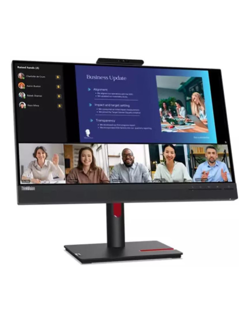 Monitor ThinkVision T24v-30 je ideálny na prácu a videokonferencie. Má 23,8" FHD IPS displej s takmer bezrámčekovým dizajnom a vernými farbami (99% sRGB). Je vybavený 2 Mpx IR kamerou pre Windows Hello, duálnymi mikrofónmi s potlačením hluku a 2x3W reproduktormi. Ergonomický stojan umožňuje plné polohovanie (výška, náklon, otočenie, pivot). Šetrí oči vďaka certifikáciám TÜV Eyesafe a Low Blue Light. Ponúka konektory HDMI, DP, VGA a USB hub pre maximálnu flexibilitu pripojenia.